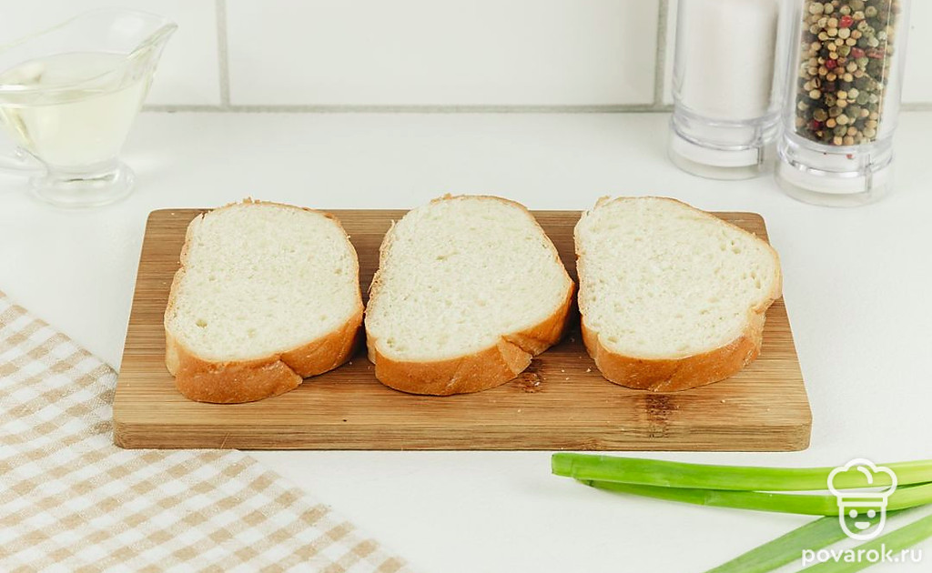 Нарежьте хлеб на три кусочка толщиной 1,5-2 см.