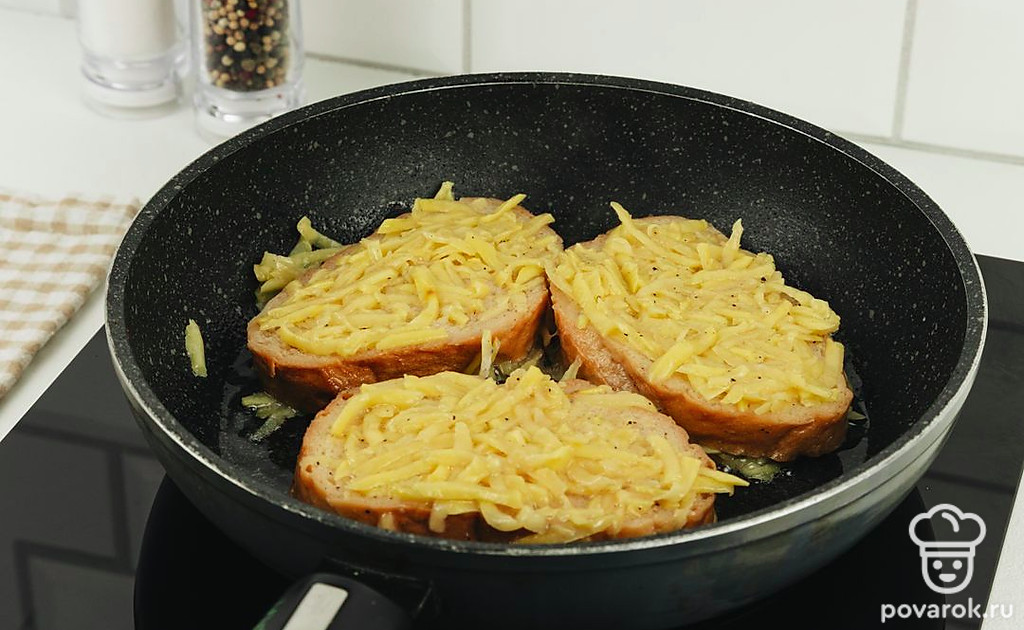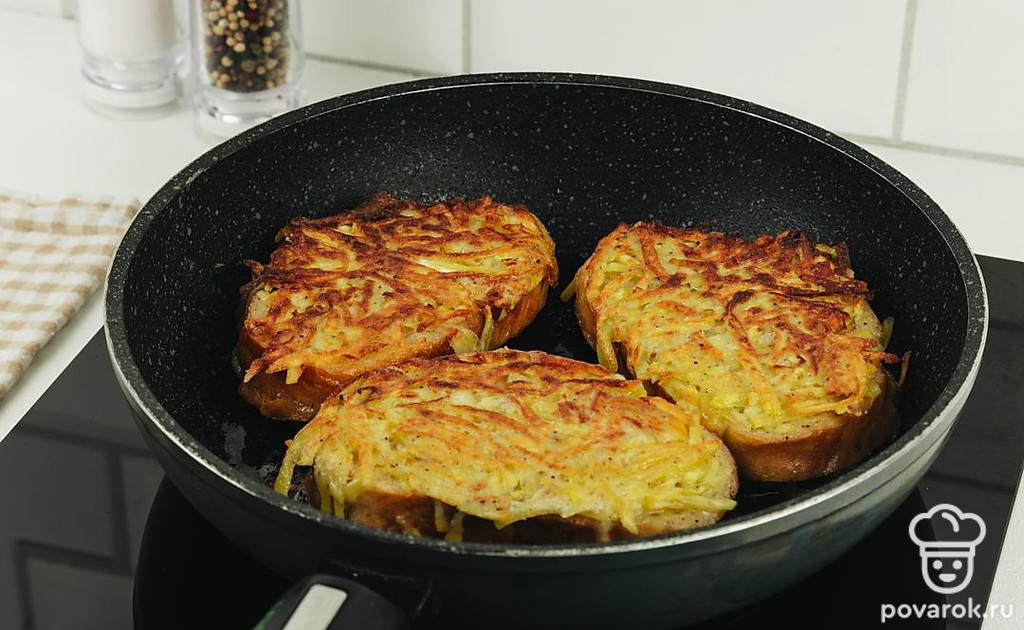 Аккуратно переверните гренки и обжарьте с другой стороны в течение 3-5 минут. При необходимости удалите излишки масла бумажным полотенцем.