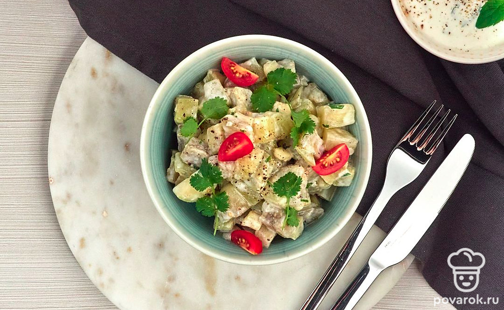 Из баклажанов с йогуртом можно приготовить вкусный, полезный и диетический салат. Его можно подать в качестве основного блюда или дополнения к мясу или птице. Баклажаны низкокалорийны, богаты клетчаткой, антиоксидантами и калием. Овощ, как и натуральный йогурт, оказывает благоприятное воздействие на ЖКТ. При выборе баклажанов отдайте предпочтение экземплярам среднего размера с упругой кожицей. Если при надавливании образуется ямка, от покупки лучше отказаться.