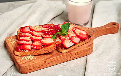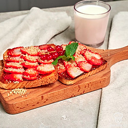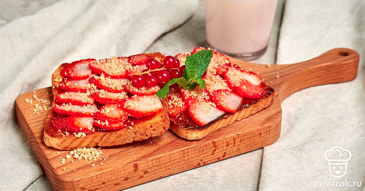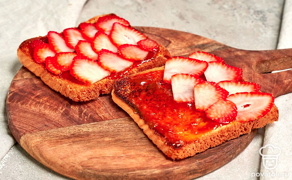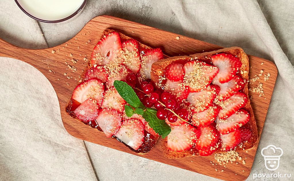 Сгущенное молоко — лакомство из детства, которое не теряет популярности. Сегодня в магазинах представлены сгущенки от разных производителей. Выбирайте ту, что в жестяных банках и обращайте внимание на состав. В нем должны присутствовать только цельное молоко и сахар. Со сгущенкой с удовольствием едят блинчики, пьют чай, из нее готовят вкусные тосты и десерты. Хрустящий тост с вареным сгущенным молоком, клубникой и грецкими орехами отлично подойдет к чаю, зарядит энергией и вдохновением.