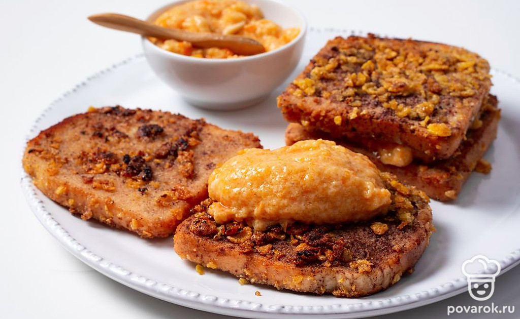 Тост с фруктовым пюре подайте к солу с медом или кленовым сиропом.