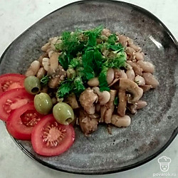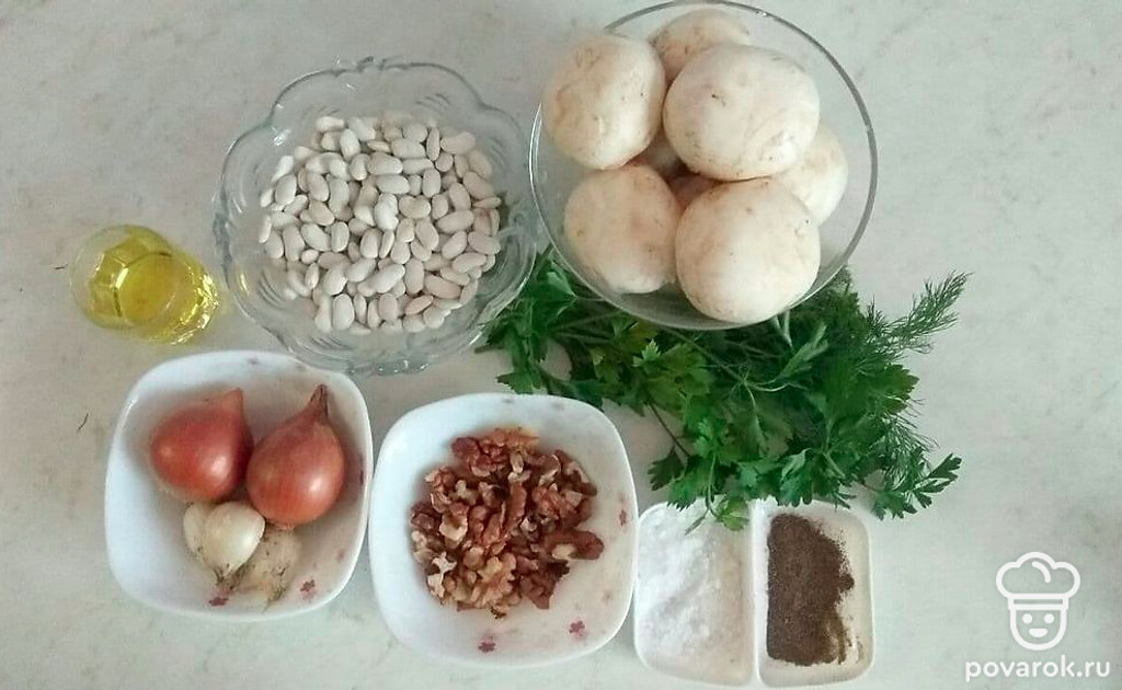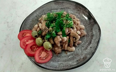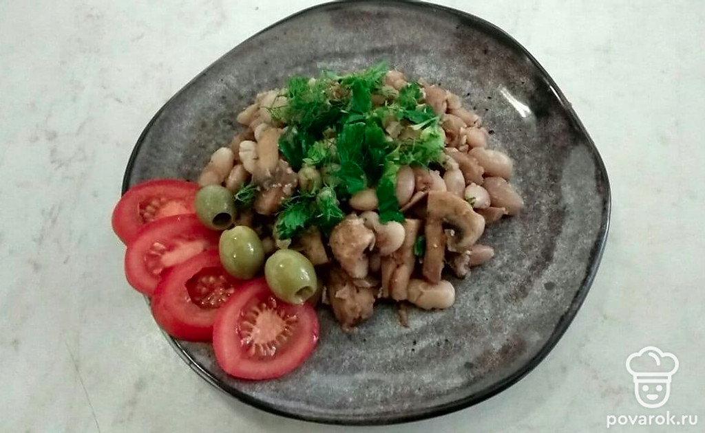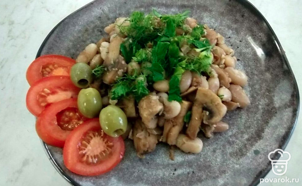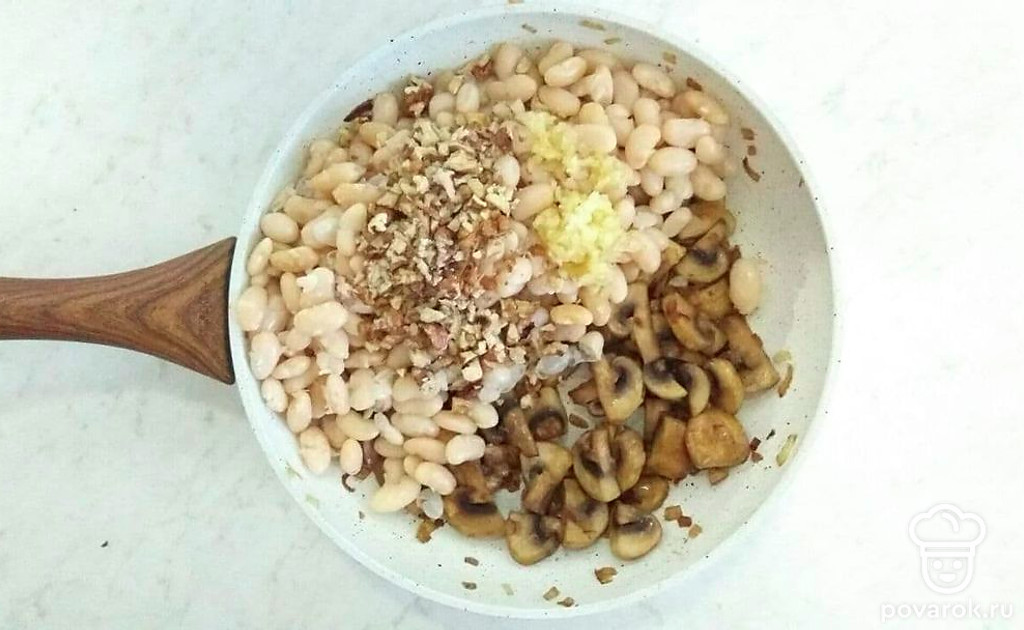 Аппетитная фасоль с грибами и грецкими орехами