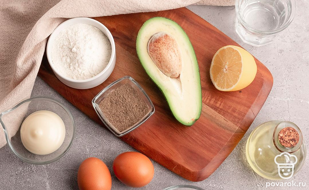Приготовьте необходимые ингредиенты. Помойте авокадо и лимон. Яйца сварите.
