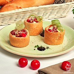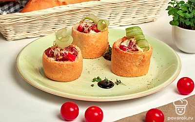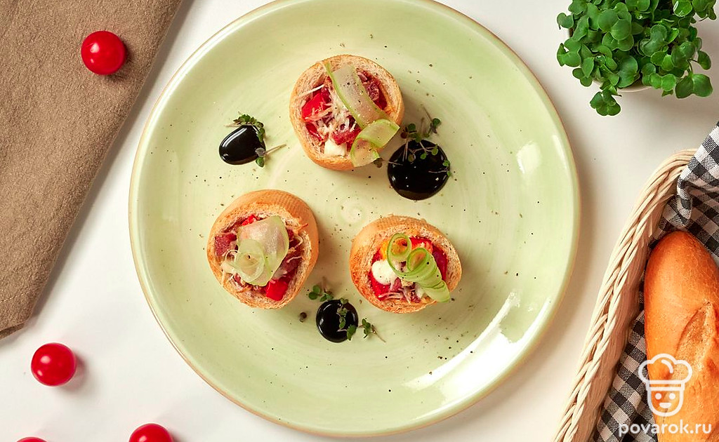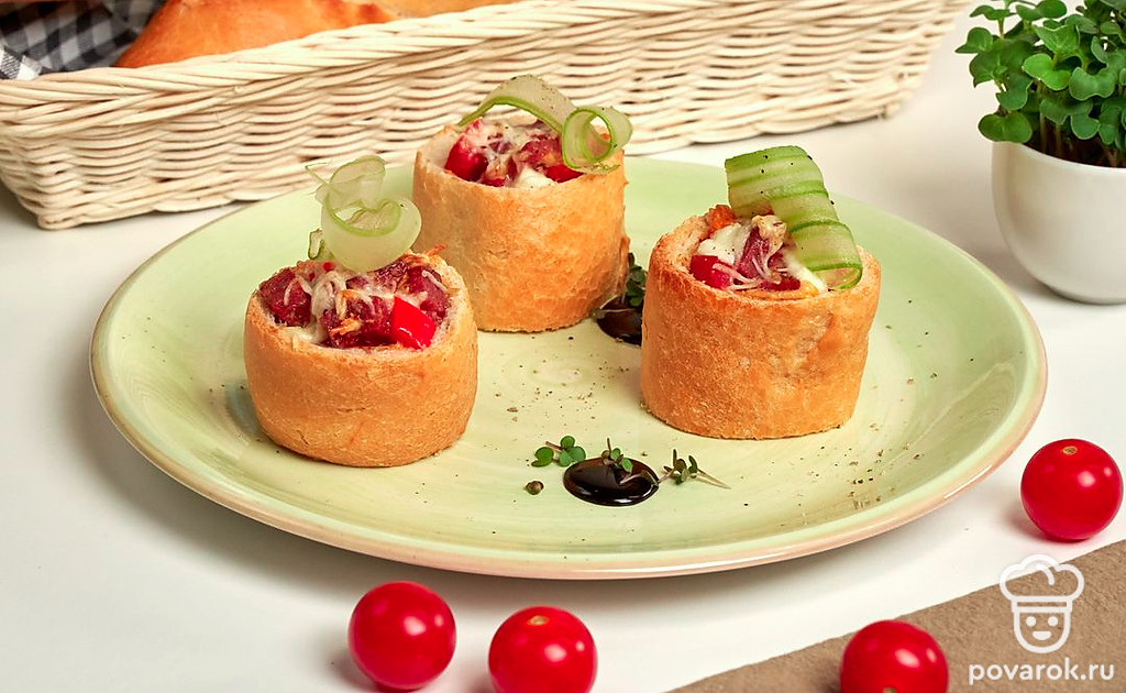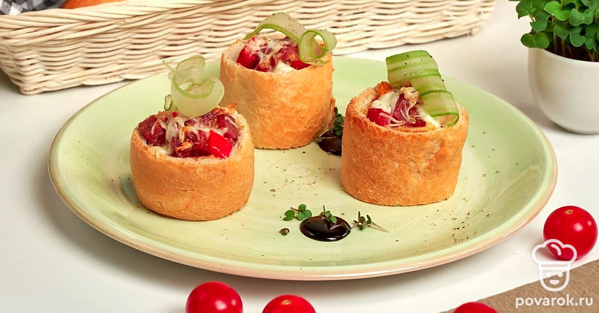Из французского багета можно приготовить вкусную закуску с сырокопченой колбасой, сыром и овощами в виде миниатюрных бочонков. Получается вкусно, сытно и празднично. Готовится блюдо буквально за 15 минут. Чтобы бочонки получились аккуратной формы и примерно равного размера, выбирайте самый длинный багет.