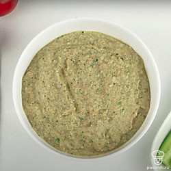 Украсьте бабагануш оливковым маслом, кинзой, кунжутом и паприкой. Подайте к бабаганушу питу, лепешки, или чипсы начос. Также можно подать картофель по-деревенски, огурцы и морковь, нарезанные небольшими брусочками.
