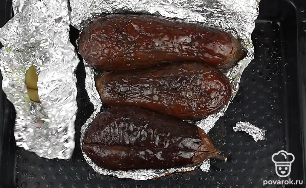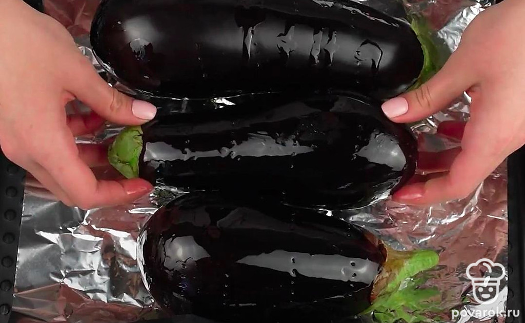 Смажьте баклажаны оливковым маслом со всех сторон. Заверните баклажаны в фольгу.