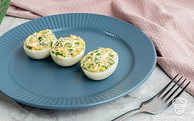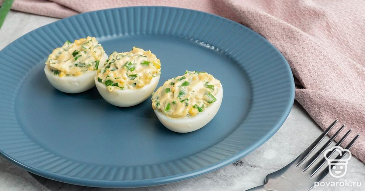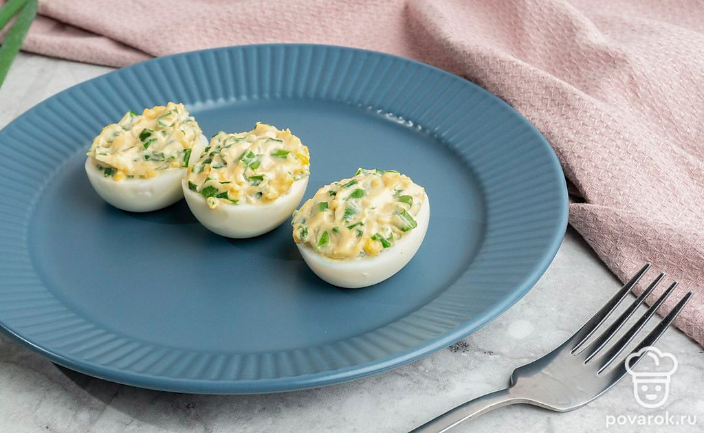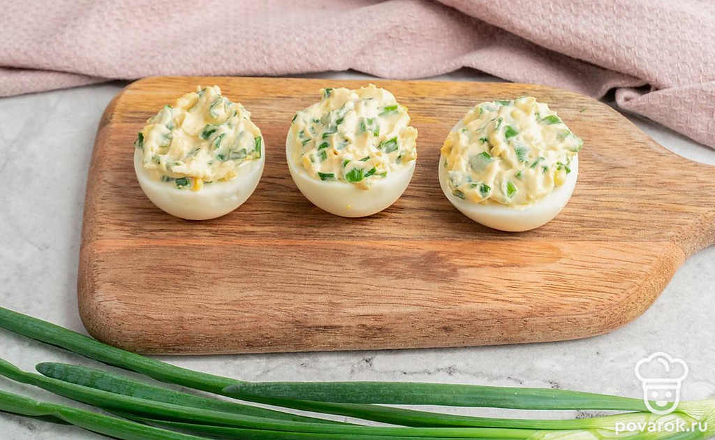 Яйца, фаршированные зеленым луком, чесноком и желтком