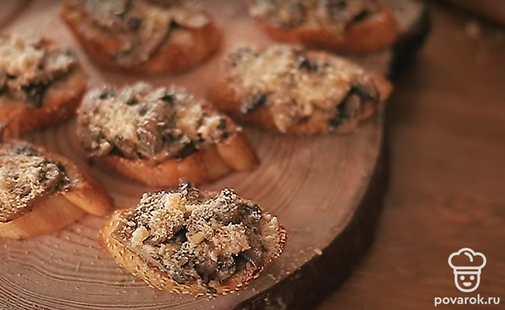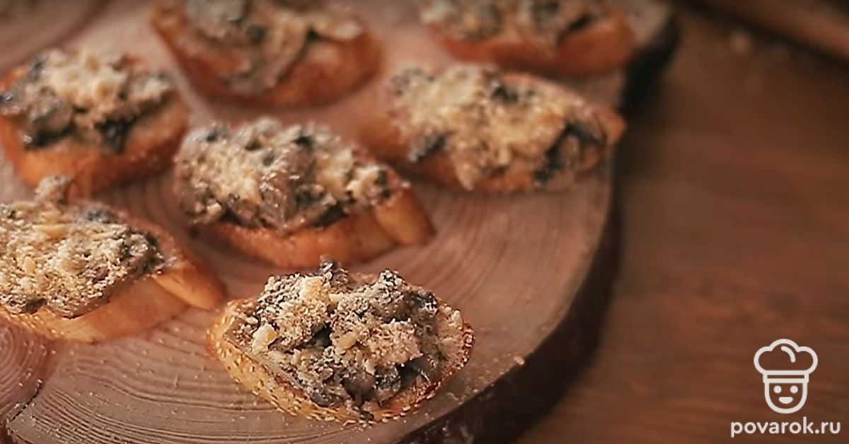 Брускетта — это итальянская закуска из поджаренного до легкой корочки и хрустящего состояния хлеба. Приготовьте брускетту с грибами, пармезаном и чесноком по нашему рецепту. Получится оригинальная быстрая закуска.