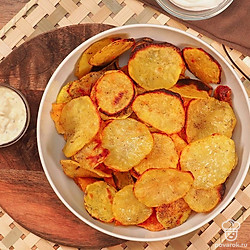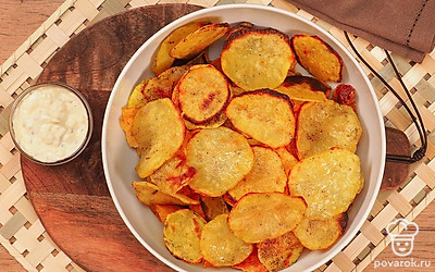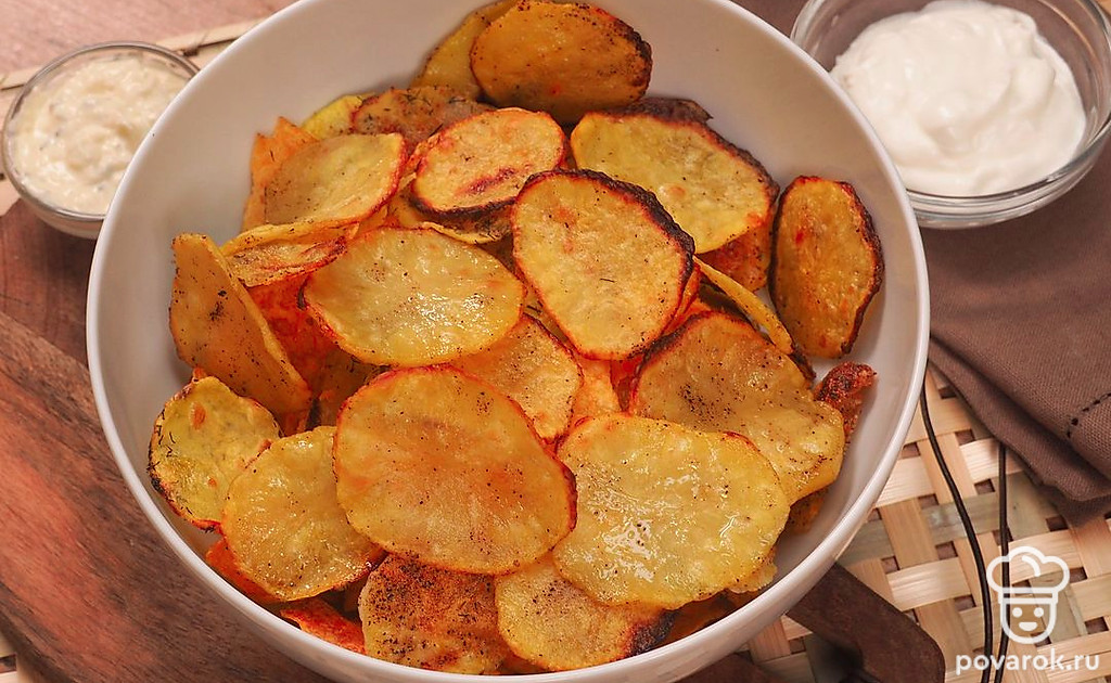 Чипсы из картошки — хрустящий снек, который можно приготовить в духовке. Домашние картофельные чипсы полезнее фабричных. Чипсы в домашних условиях впервые начали готовить в Америке в середине прошлого века. Хрустящая закуска стала популярна и в Европе. Попробовав это лакомство, многие задумались, как сделать чипсы самостоятельно. Сделать их пошагово по рецепту не составит труда.