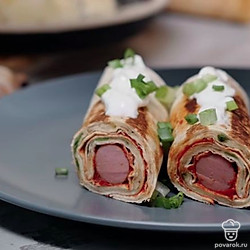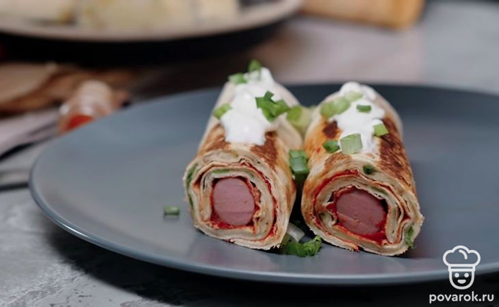 Хот-дог и тортилья — союз необычный и явно неожиданный, но при этом радующий своим вкусом.