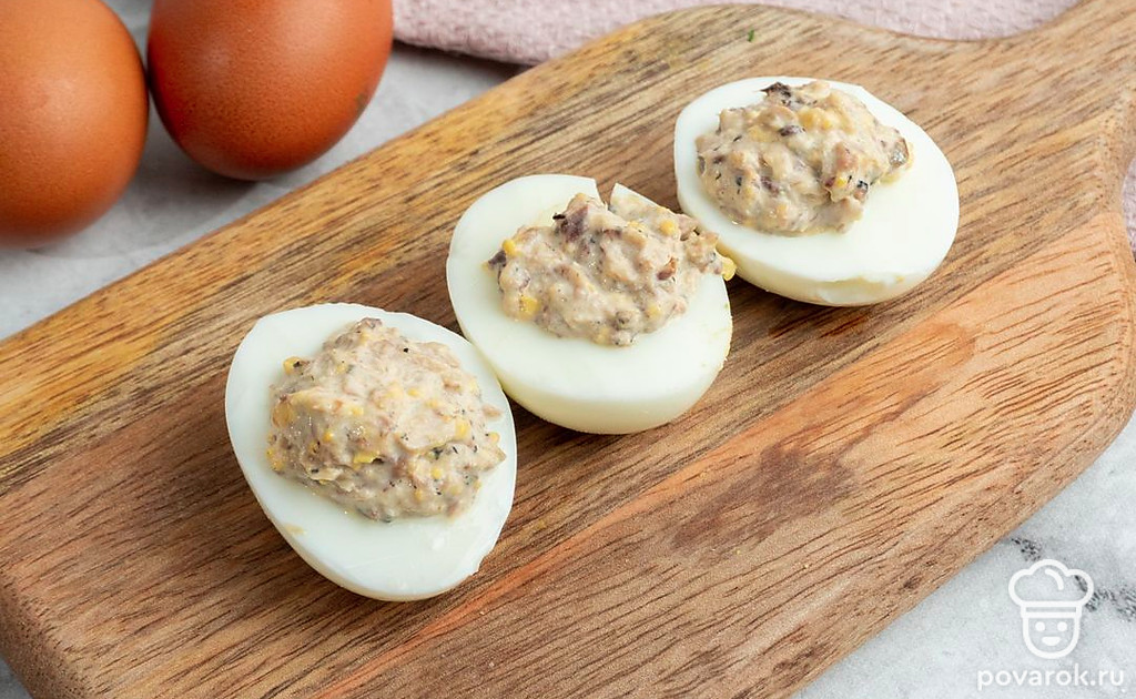 Фаршированные яйца сайрой и майонезом — вкусное и простое праздничное блюдо или отличный завтрак. Фаршированные яйца с сайрой — это отличная и быстрая в приготовлении закуска.