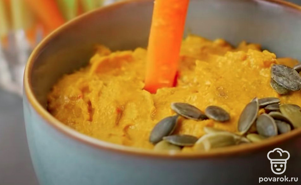 Главный ингредиент хумуса — нут — отличается высоким содержанием белка, который отлично усваивается. Благодаря этому нут становится все более популярным среди приверженцев здорового питания. С помощью тыквы вы можете добавить классическому рецепту необычную нотку.