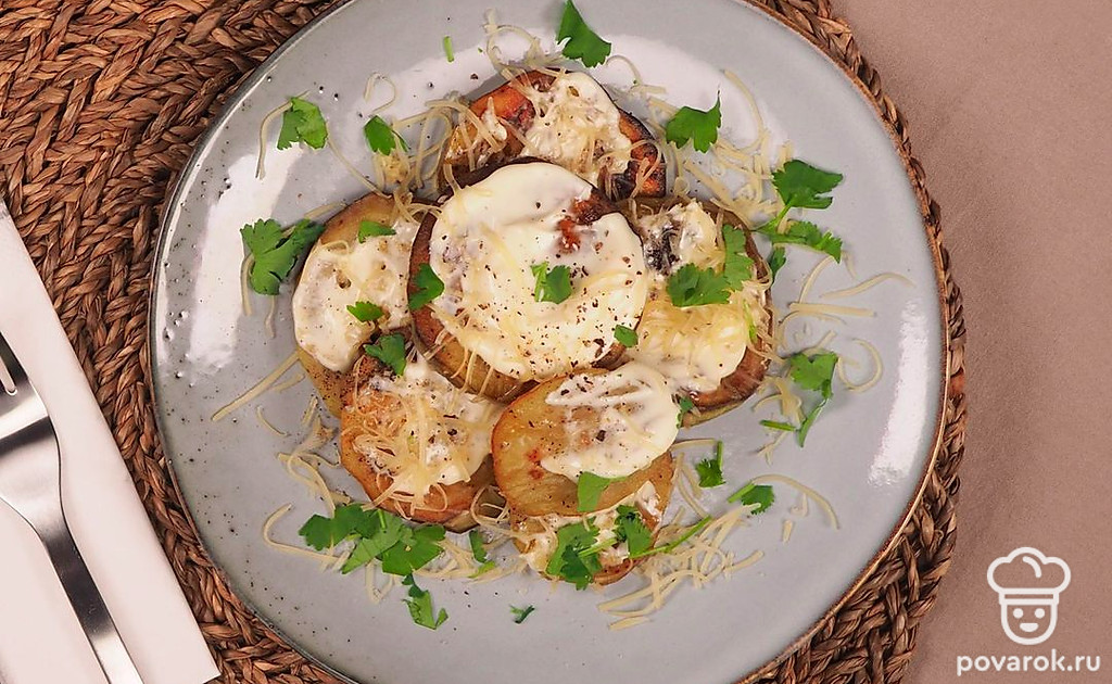 Баклажан — один из древнейших овощей. Его начали выращивать в Индии в первом тысячелетии до н.э. В России они появились в 17 веке и получили народное название "синенькие". Из баклажанов можно сделать вкусную и сытную закуску с сыром и майонезом. Чтобы приготовить жареные баклажаны с сыром, нужно нарезать их колечками, обвалять в муке, обжарить на сковороде и посыпать сыром, майонезом и чесноком. Баклажаны можно не чистить, но тогда в блюде будет чувствоваться легкая горечь.