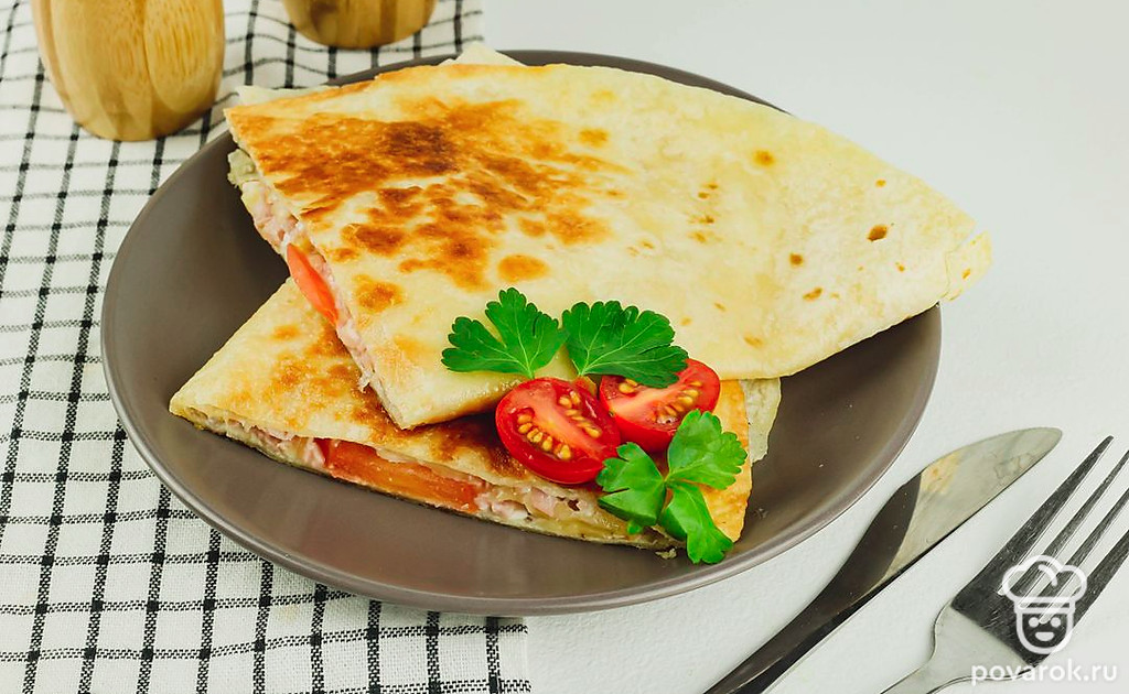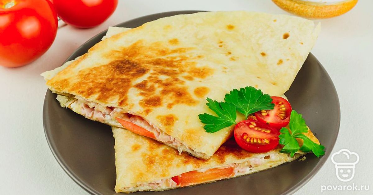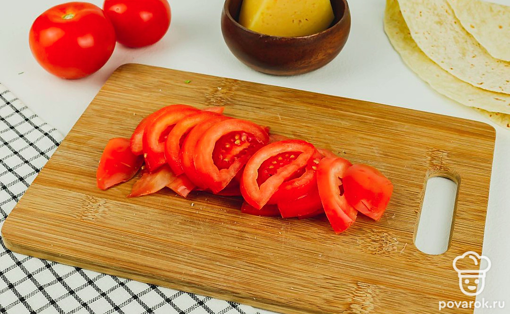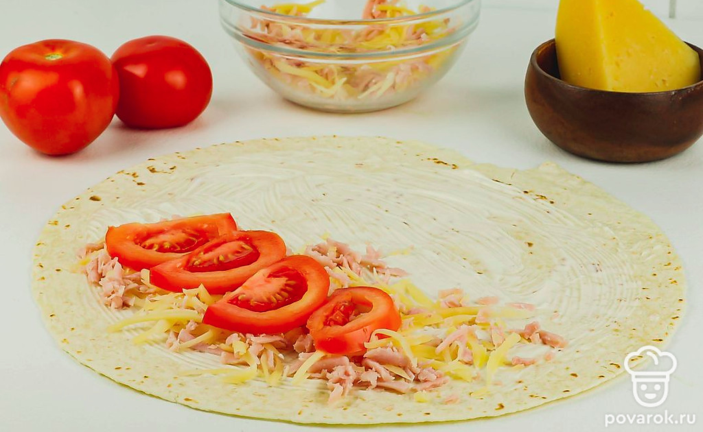 Лаваш с начинкой из колбасы, помидоры и сыра
