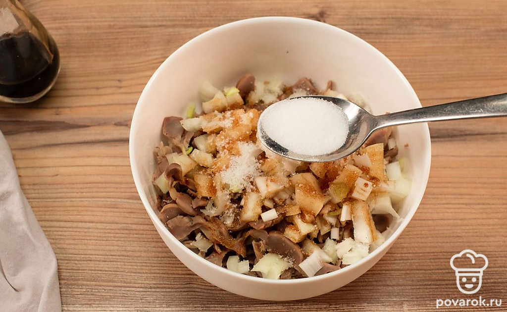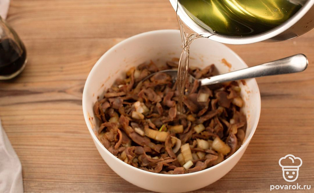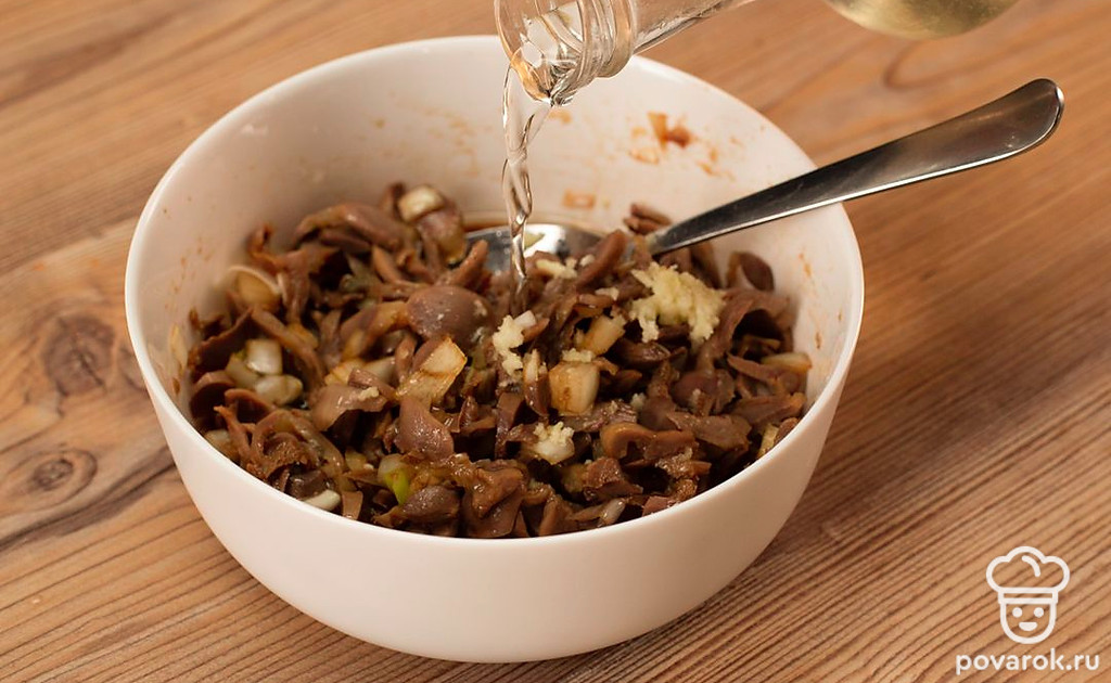 Куриные желудки можно не только варить, тушить и жарить. Они очень хороши и в охлажденном маринованном виде. Маринованные желудочки можно использовать в качестве самостоятельной закуски или же добавить в салат. Спорим, гости не сразу угадают, какой там прячется секретный ингредиент?