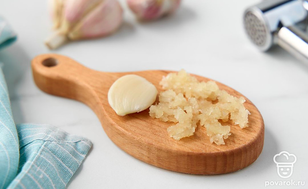 Пропустите чеснок через пресс.
