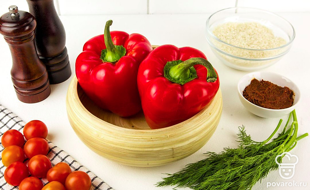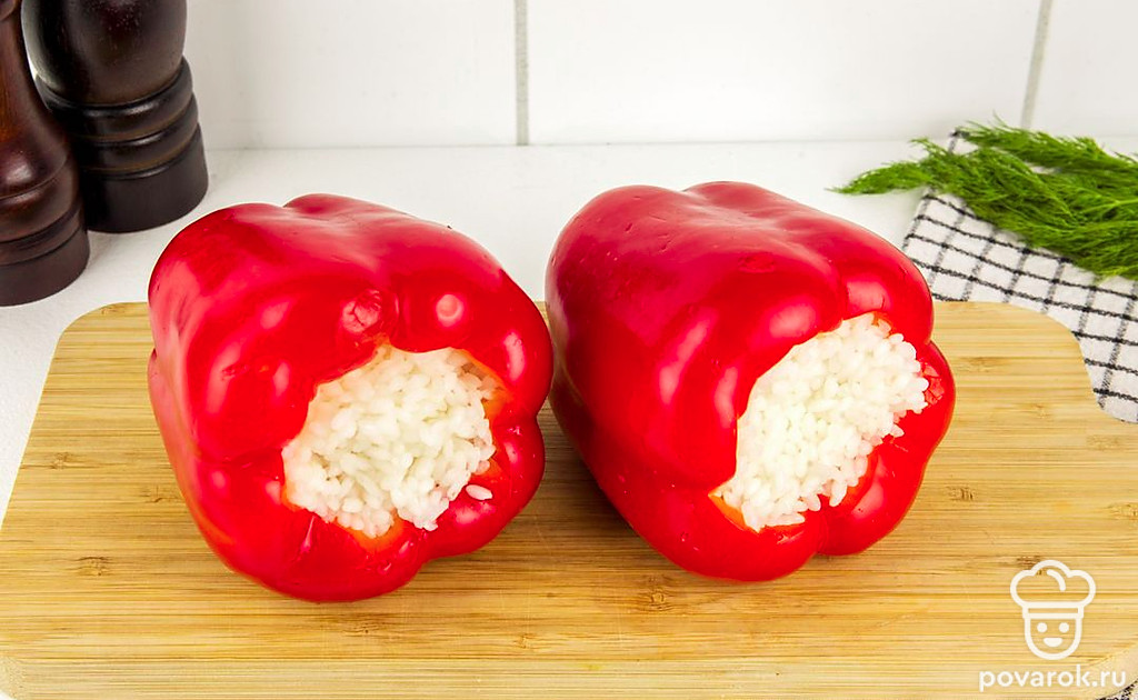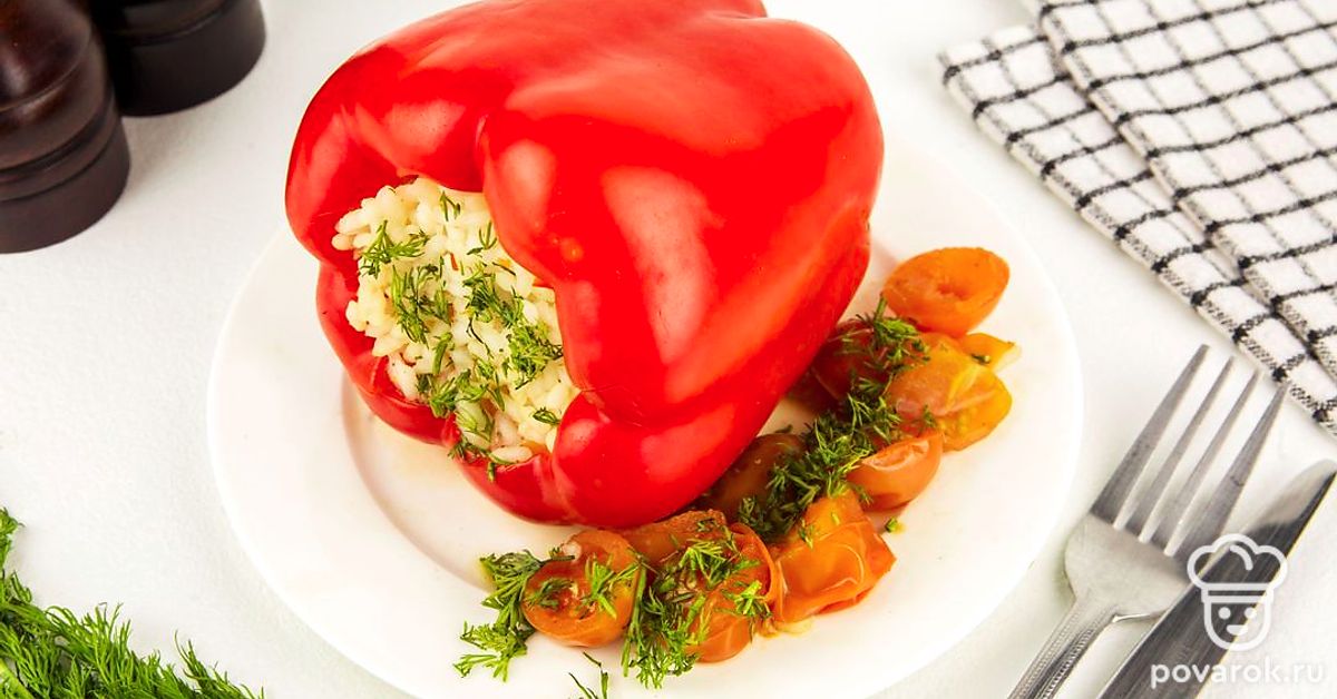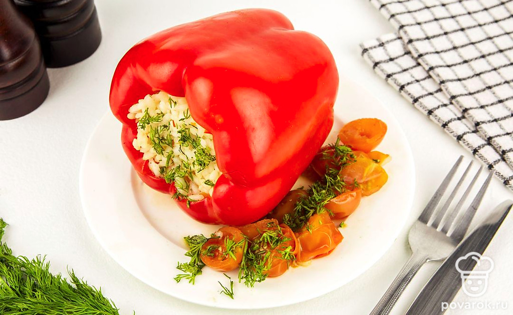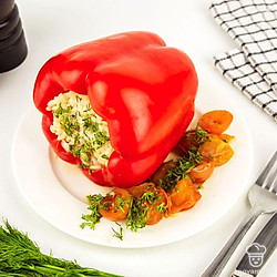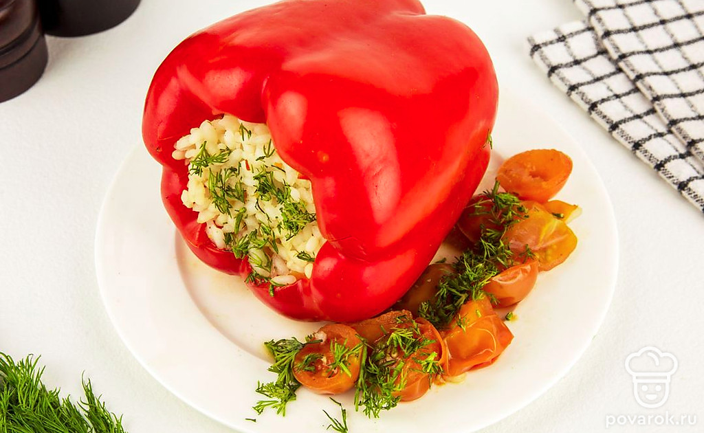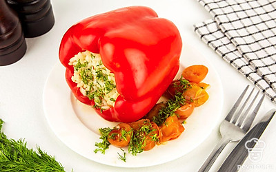 Такие фаршированные перцы прекрасно смотрятся на столе и особенно понравятся тем, кто не ест мясо и другие продукты животного происхождения. Готовятся они очень просто, а получаются вкусными и ароматными. Также эти перцы можно начинить грибами, луком, помидорами и другими овощами. Прекрасно дополнит фаршированные перцы томатный соус, который готовится всего 5 минут.
