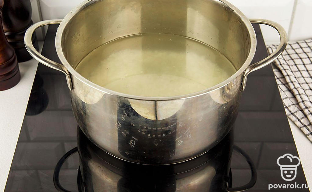 Промойте рис холодной водой, посолите и варите, не доводя до готовности.