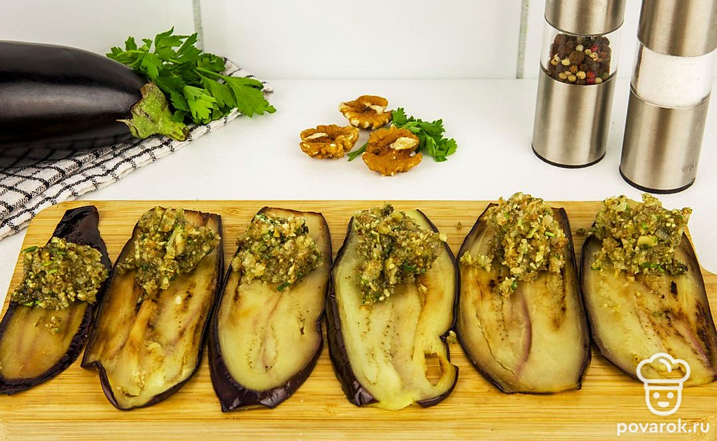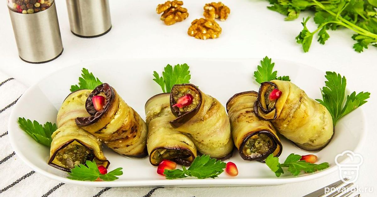 Рулет из баклажанов по-грузински — оригинальная закуска, которая готовится из самых простых ингедиентов. Рулетики получаются ароматными благодаря добавлению чеснока и кинзы, а грецкий орех придаст блюду пикантности. Поиграв с ингредиентами для начинки, вы можете сделать для себя закуску с идеальным вкусовым сочетанием.