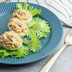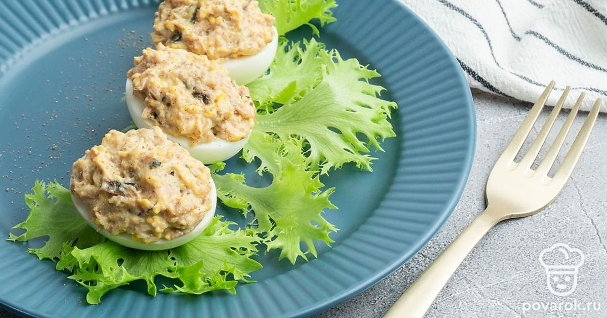 Фаршированные яйца всегда удачно смотрятся на праздничном столе. Предлагаем вам сегодня нафаршировать яйца шпротами, сыром и чесноком — это вкусно, сытно и очень аппетитно!
