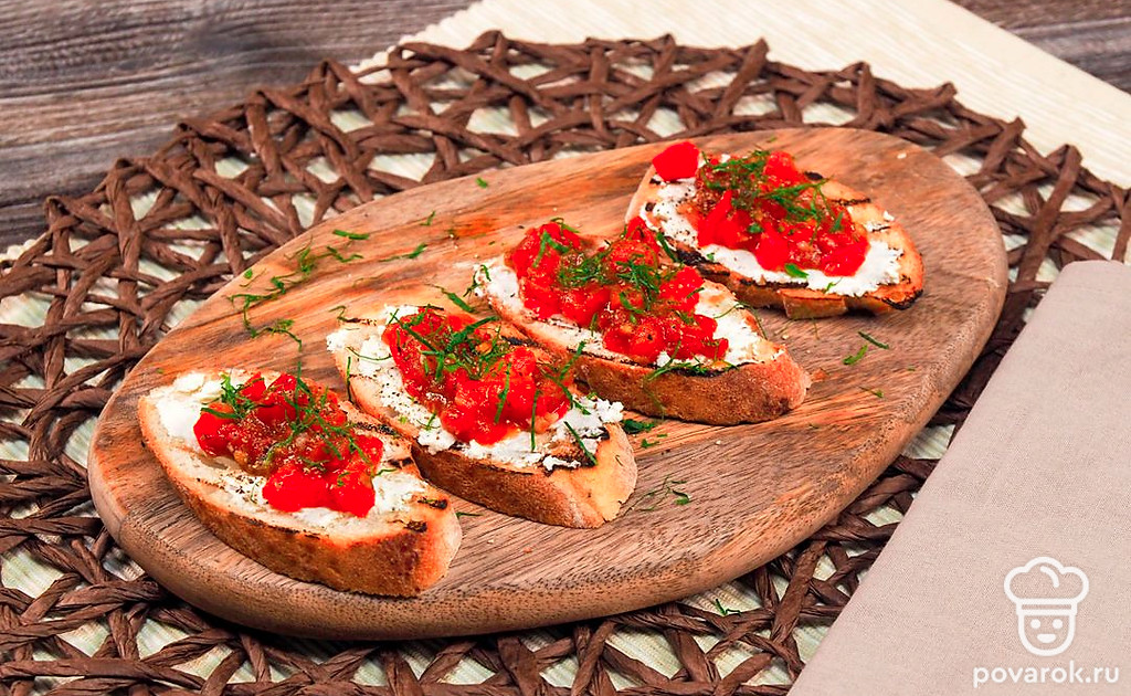 Брускетта с томатами — легкая закуска, бутерброд по-итальянски. Средиземноморская кухня славится богатством вкуса и аромата, где даже из бутерброда с хрустящим хлебом можно сделать произведение искусства. Брускетта с томатами готовится по простому рецепту, включающему в себя хлеб Чиабатта, творожный сыр, помидоры и зелень. Брускетты хороши тем, что для их приготовления можно брать самые разные ингредиенты, экспериментируя со вкусом.