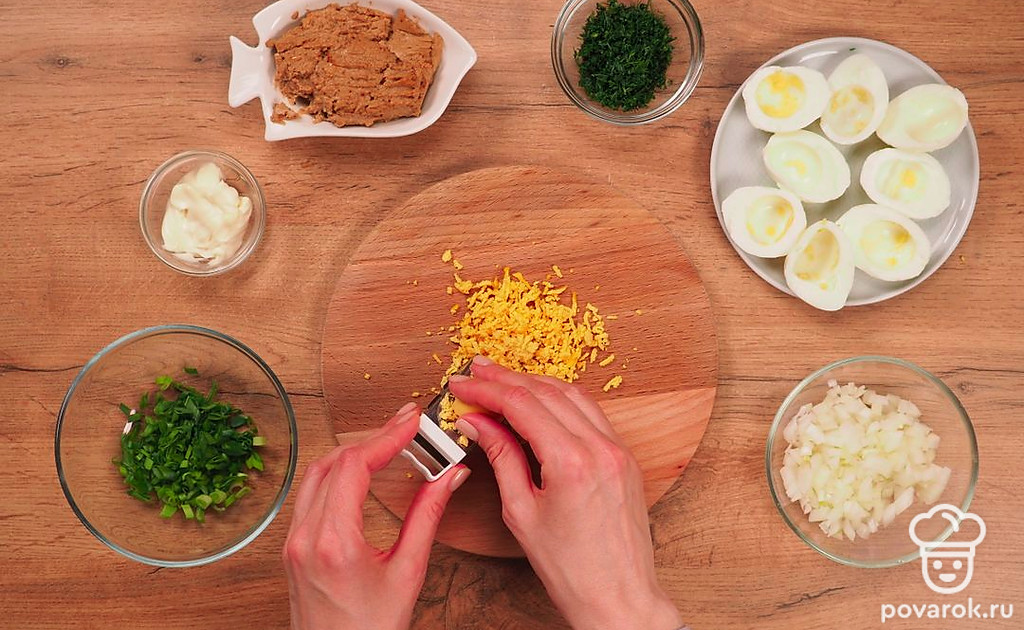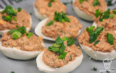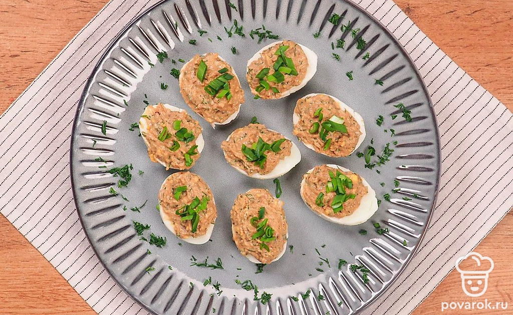 Яйца, фаршированные печенью трески — закуска, которая часто встречается на фуршетах и свадебном торжестве. Рецепт нравится поварам за легкость в исполнении, едокам — за насыщенный вкус. Выбирайте натуральные консервы с маркировкой «010» — это означает, что продукт выполнен в соответствии с ГОСТ. Перед покупкой встряхните баночку с продуктом, при отсутствии булькающих звуков, смело опускайте товар в продуктовую. корзину.