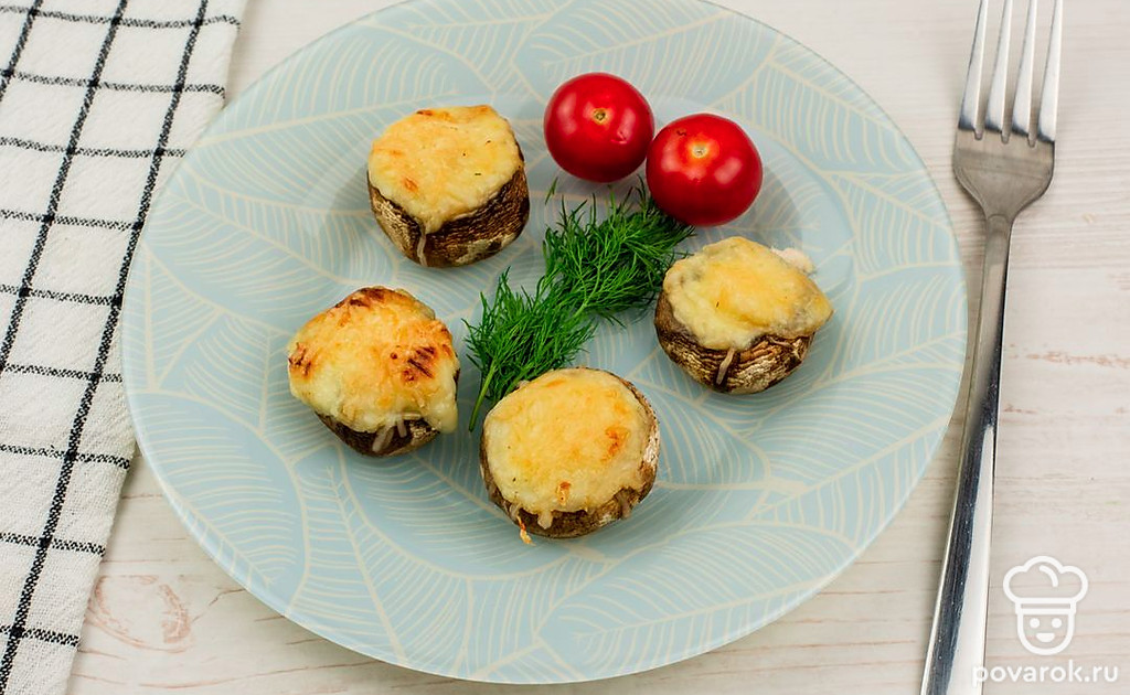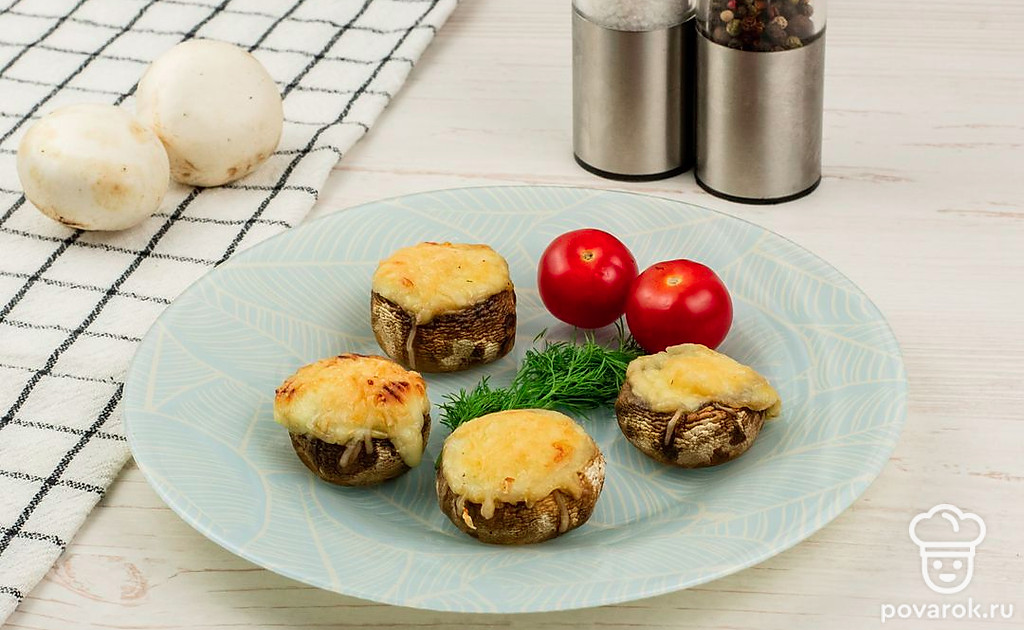 Шампиньоны со сливочным сыром — нежная и сочная горячая закуска, которая украсит ваш праздничный и будничный стол. Легкое в приготовлении блюдо, которое точно оценят сырные гурманы. Оно хорошо сочетается с мясом и рыбой. Закуска легкая и низкокалорийная, в сервировке к ней отлично подойдут томаты и любая свежая зелень по вашему вкусу.