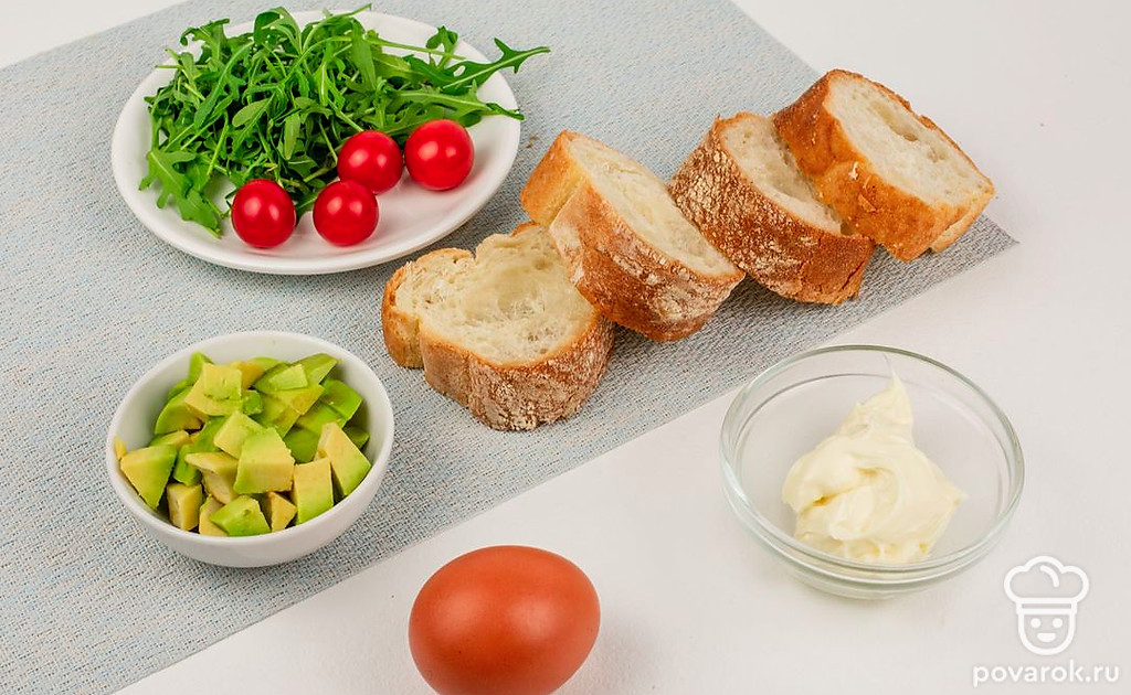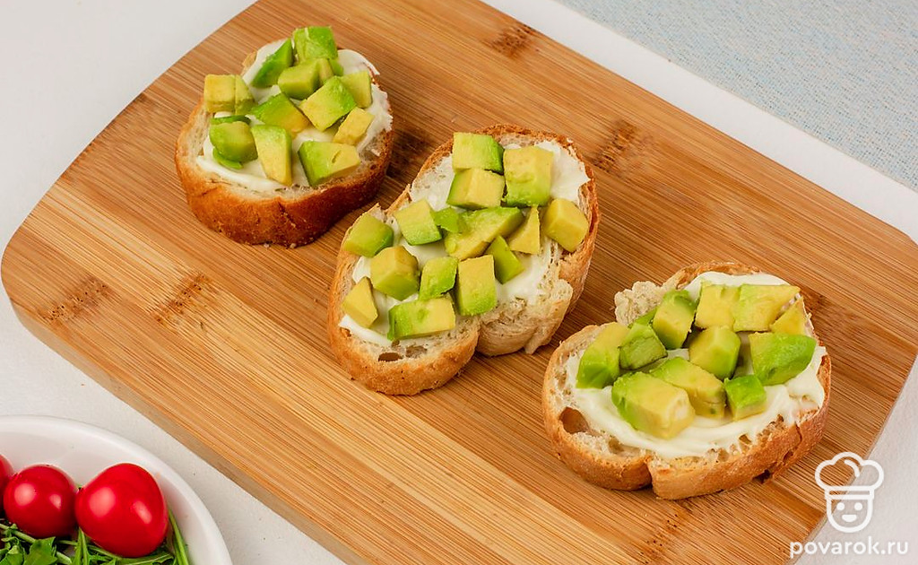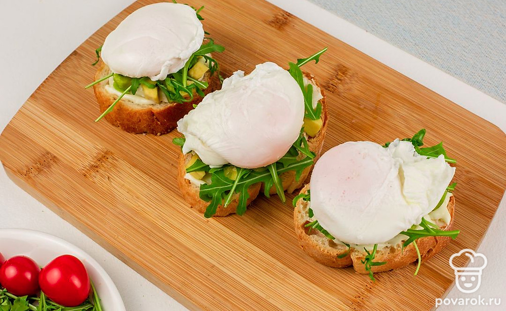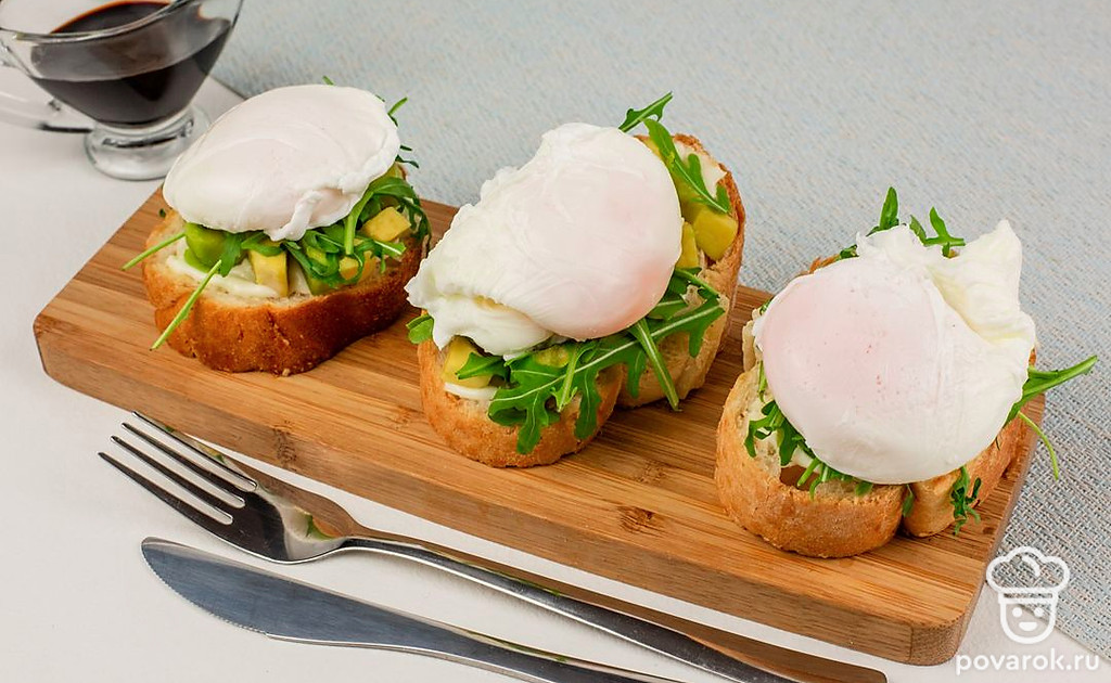 Брускетта с авокадо, плавленым сыром и яйцом пашот