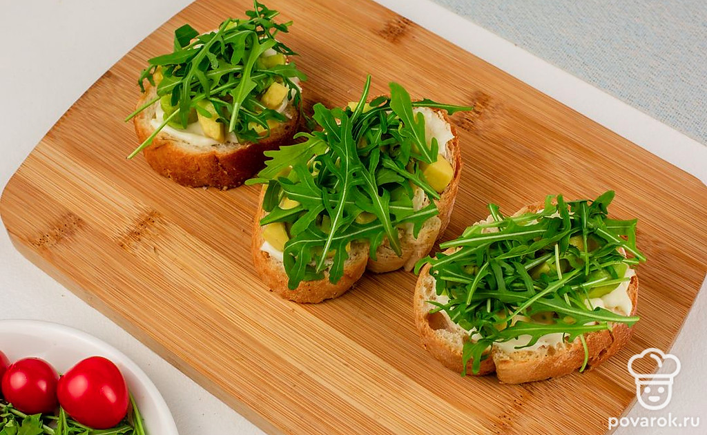 Брускетты с сыром, авокадо и яйцом пашот готовы. Приятного аппетита.