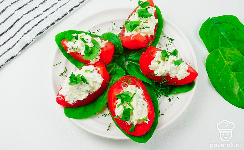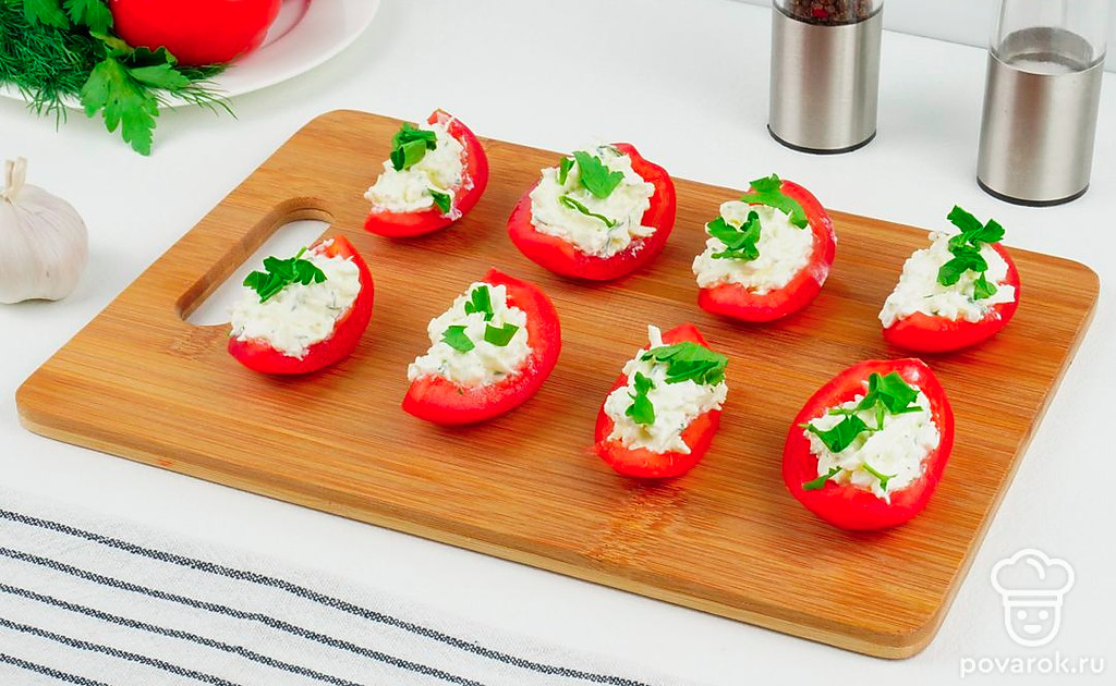 Закуску из помидоров, сыра и творога легко приготовить, потратив минимум времени и сил. Вы можете с успехом заменить ею любой сложный в приготовлении салат даже на праздничном столе. Классическое сочетание нежной, творожной начинки и свежих овощей не оставит равнодушными ни вас, ни ваших гостей. Эта закуска подойдет как для вечеринки, так и для домашнего обеда.