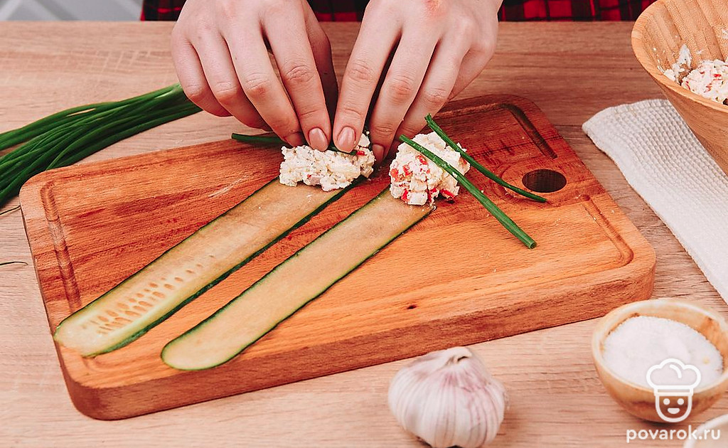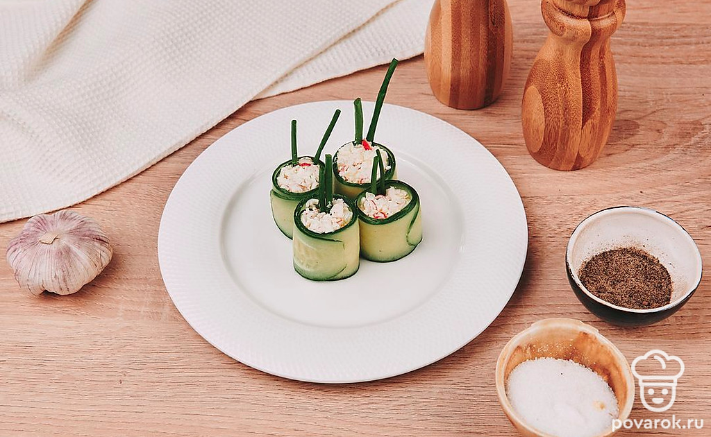 Закуски — это то, что разлетается в первую очередь, поэтому рецепт закуски должен соответствовать двум главным правилам: быстрота приготовления и отменный вкус! Закуска из огурца с крабовыми палочками идеально выполняет оба правила. Всеми любимое сочетание нежного крабового мяса со свежим огурцом в оригинальной интерпретации точно не оставят Вас равнодушными. Оригинальность подачи украсит любой стол от новогоднего до столика на летней веранде.