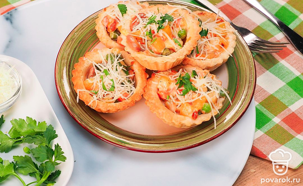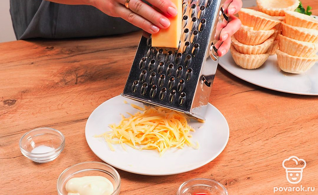 Тарталетки с сыром бывают холодными и горячими. Горячие обычно запекают в духовке. Чтобы сыр лучше плавился, стоит брать твердые сорта с длительным сроком вызревания. Это может быть, к примеру, сыр российский, финский со сливочным вкусом, голландский, радомер или пармезан. Дополнительно в начинку можно добавить мясо, овощи, яйца и даже морепродукты. Вкусные запеченные закуски хорошо подавать на мероприятия, где организован фуршет. Для насыщенного вкуса майонез лучше использовать пожирнее, не менее 67%.