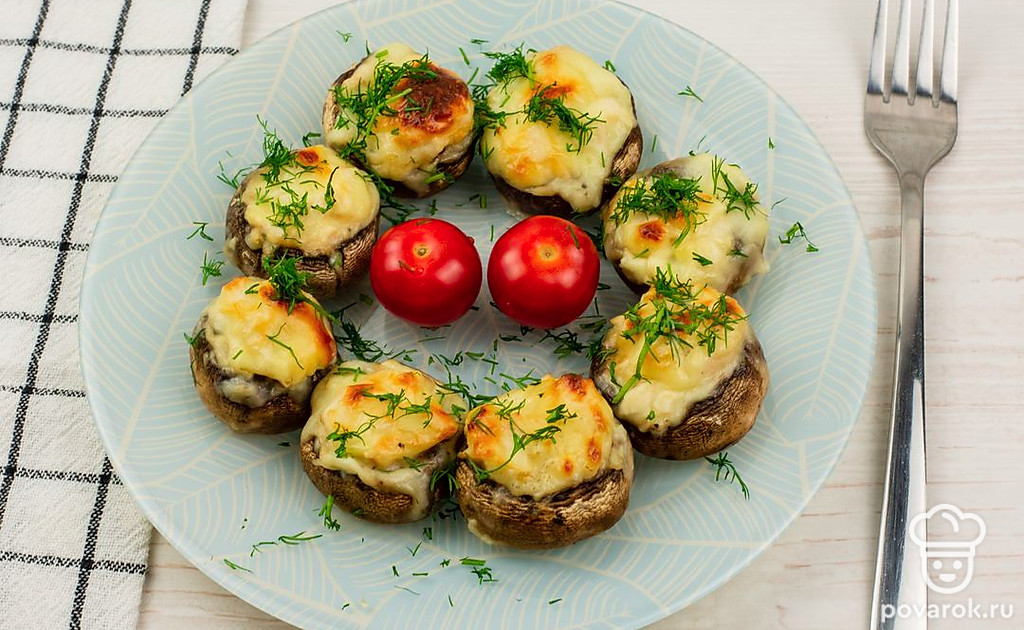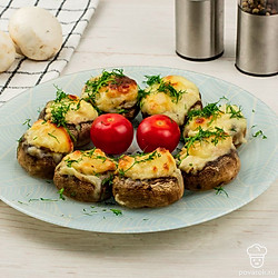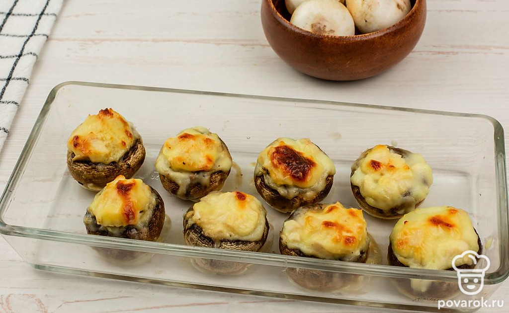 Поместите грибы в духовку. Готовьте 25 минут при 170 °C до появления золотистой корочки.