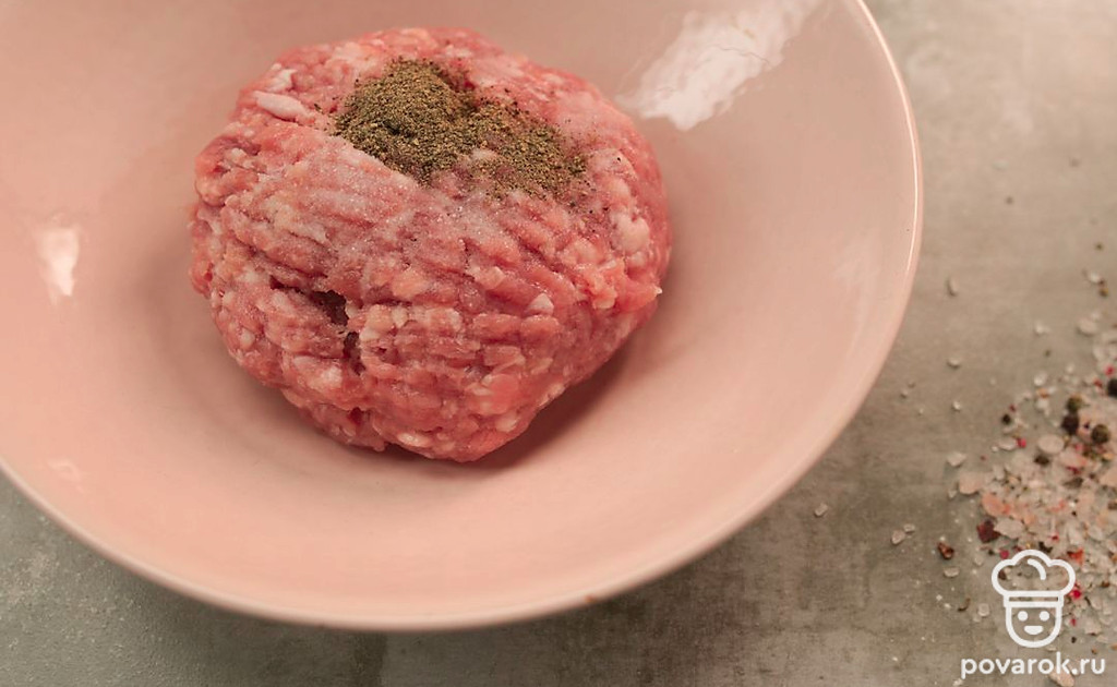 Посолите и поперчите фарш, затем сформируйте из него плоские котлеты.