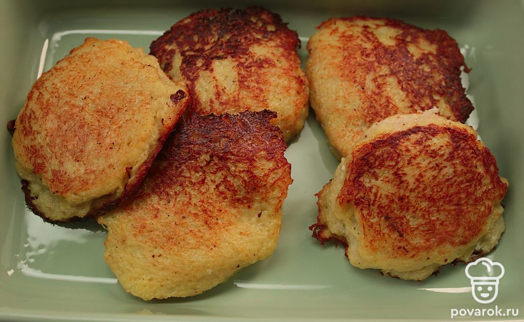 Жарьте драники с начинкой на умеренном огне по 2-3 минуты с каждой стороны. Затем переложите их на противень и отправьте на 30 минут в духовку, разогретую до 180°C.