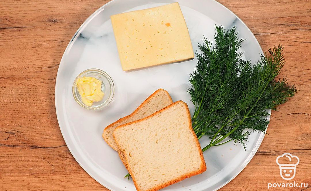 Расположите удобно все ингредиенты. Поставьте сковороду разогреваться на медленный огонь. Заранее достаньте сливочное масло из холодильника, чтобы оно стало мягким. Сыр нарежьте тонкими слайсами.
