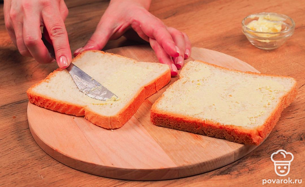 Намажьте сливочное масло на одну сторону каждого ломтика хлеба.