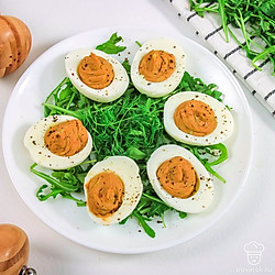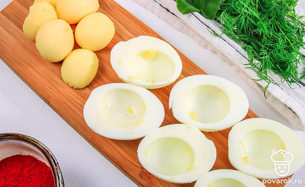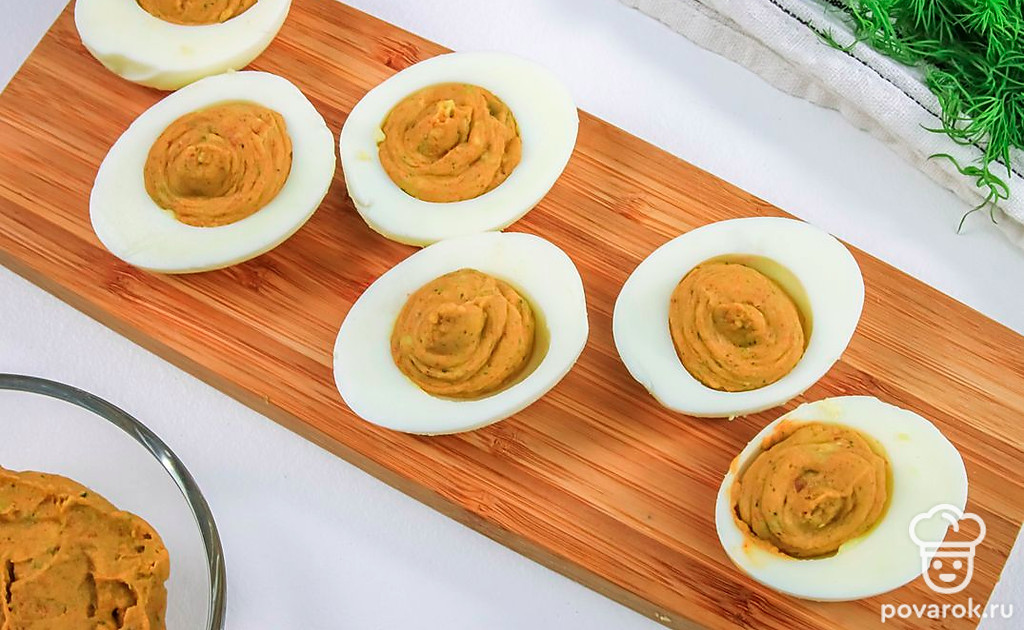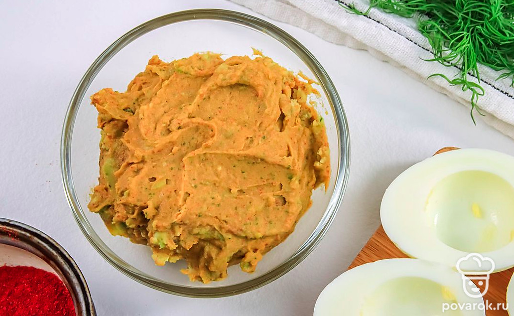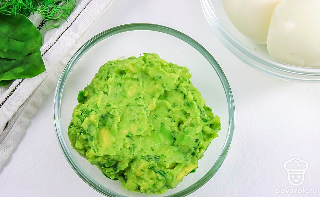 Яйца, фаршированные авокадо, по этому рецепту украсят любой праздничный стол. Блюдо получается очень вкусным и легким. А еще полезным, ведь в авокадо содержатся витамины и полезные жирные кислоты. Оно расщепляет холестерин и улучшает мозговую деятельность. Для приготовления такой закуски лучше всего взять спелое авокадо, обладающее ореховым вкусом и кремовой маслянистой текстурой.