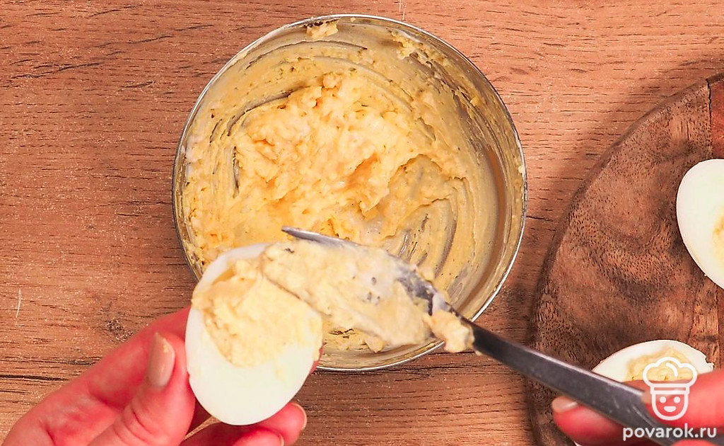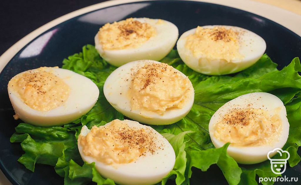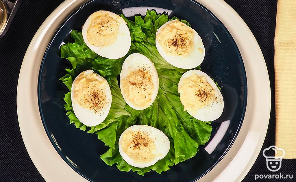 Рецептов приготовления фаршированных яиц множество, самый простой из них включается всего несколько ингредиентов: чеснок, майонез, желток, сливочное масло. Фаршированные яйца с чесноком можно подавать на завтрак или использовать в качестве холодной закуски. Все продукты должны быть свежими и качественными. Чтобы блюдо получилось менее калорийным, можно заменить майонез на обезжиренную сметану, а для нежного вкуса добавить тертый сыр.