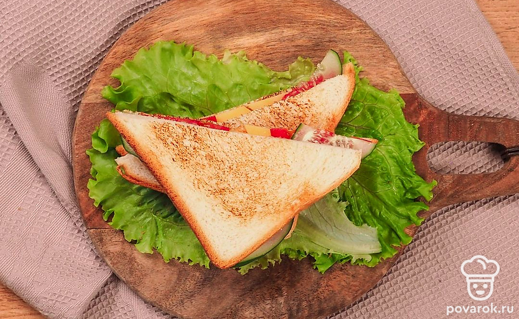Подавайте сэндвич со свежими листьями салата.