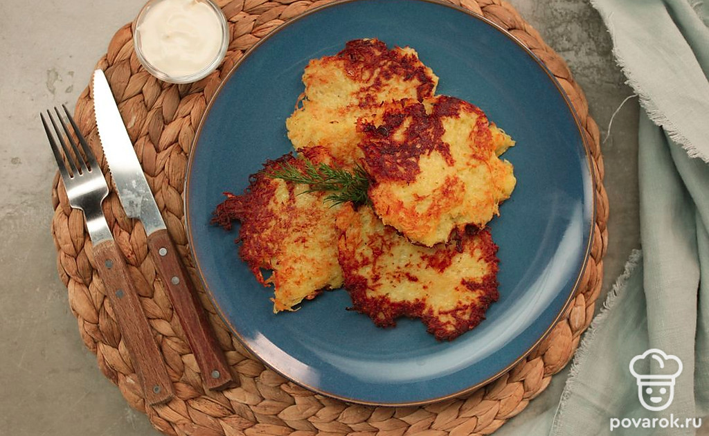 Если классические драники — это просто вкусный обед, то драники с сыром и чесноком — это вкусный обед в квадрате! Во-первых, они получатся хрустящими снаружи, но тягучими внутри, во-вторых, чеснок, который не используется в классическом рецепте, придает блюду невероятно аппетитный запах и яркий вкус.