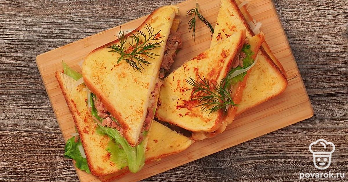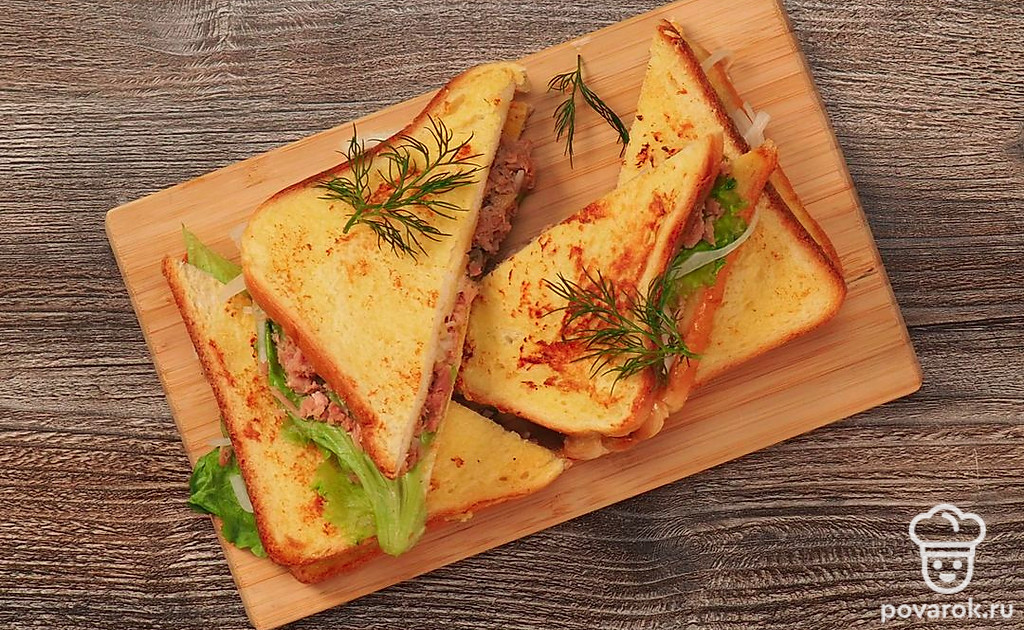 Существует огромное количество рецептов сэндвичей (закрытых бутербродов с начинкой между двумя ломтиками хлеба или булки). Чаще всего, помимо тостового хлеба, ингредиентами для них становятся сыр, ветчина, мясо, яйца, овощи, рыбные продукты, а также свежие овощи. Сегодня предлагаем приготовить сэндвич с тунцом. Этот простой рецепт на скорую руку особенно оценят любители морепродуктов. Выбирайте консервы с тунцом, в составе которых — филе тунца, а не «салатный тунец» (с костями, шкуркой и т.д.).