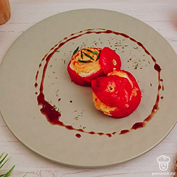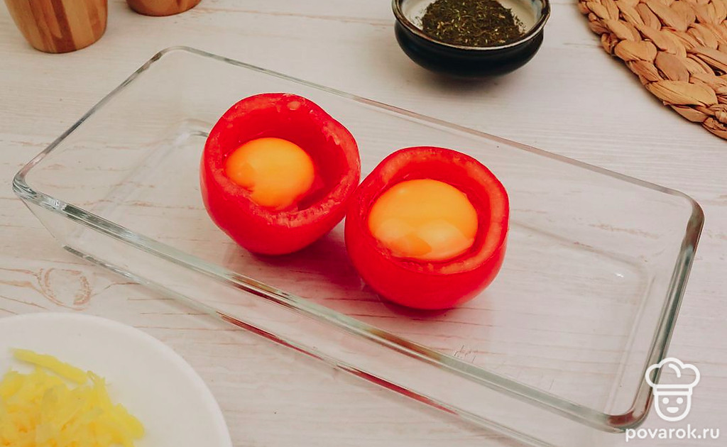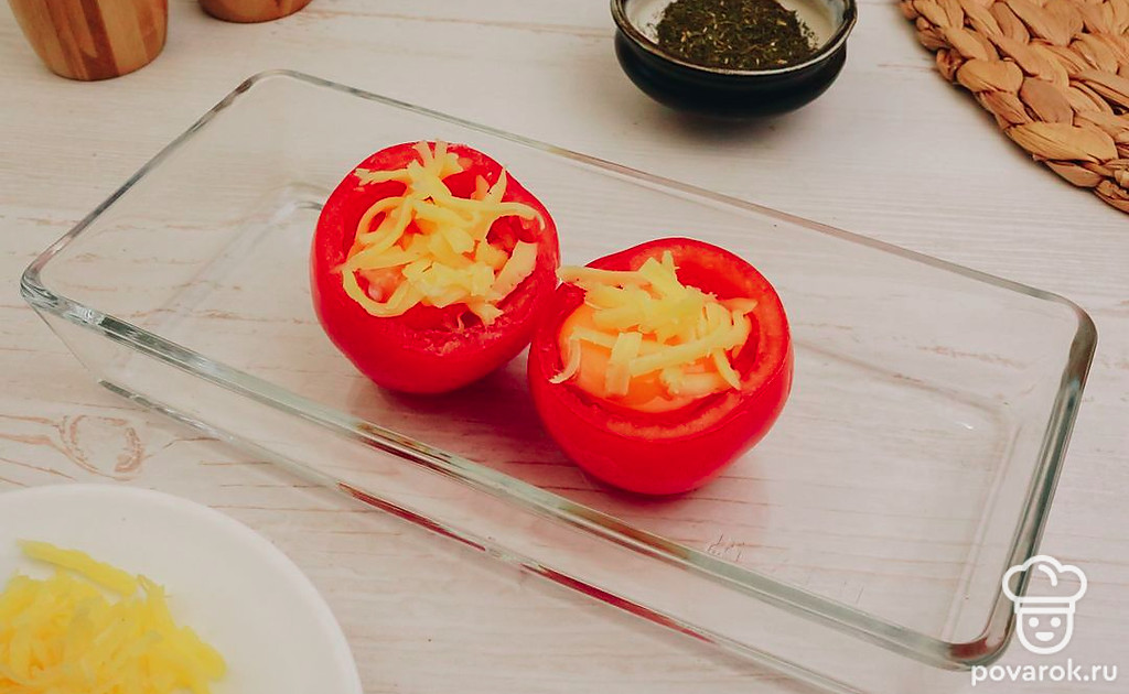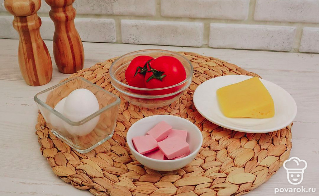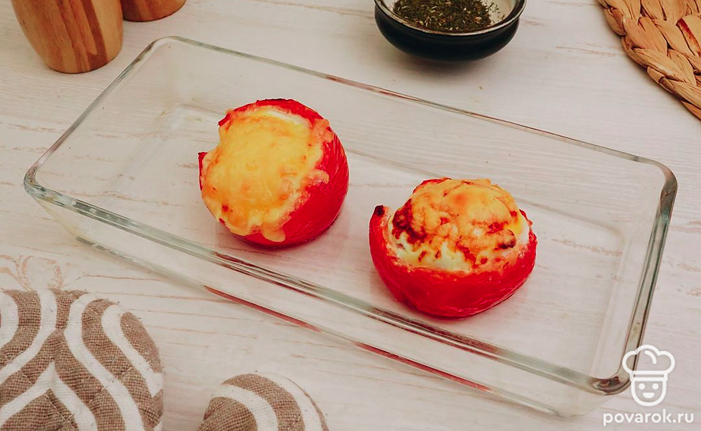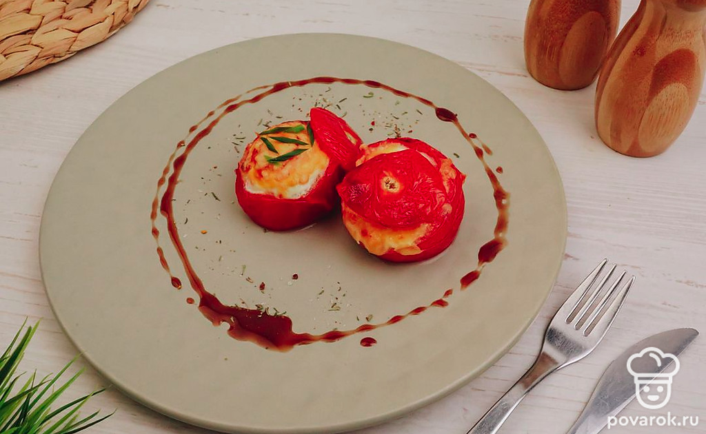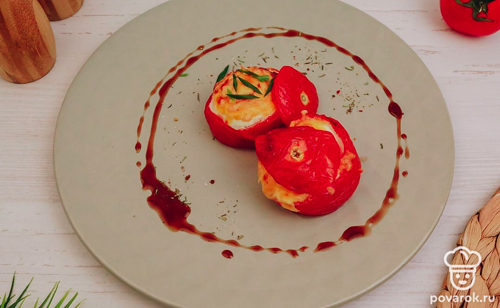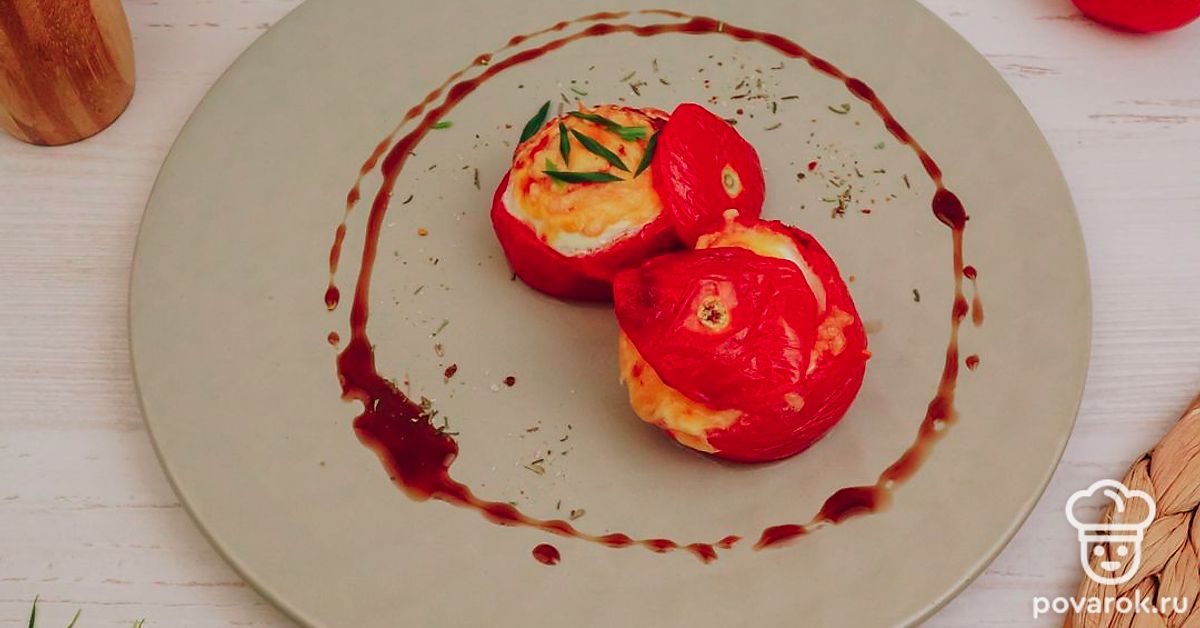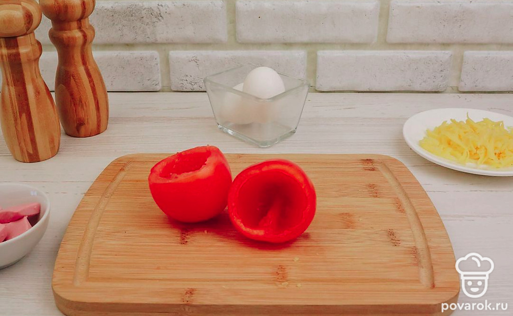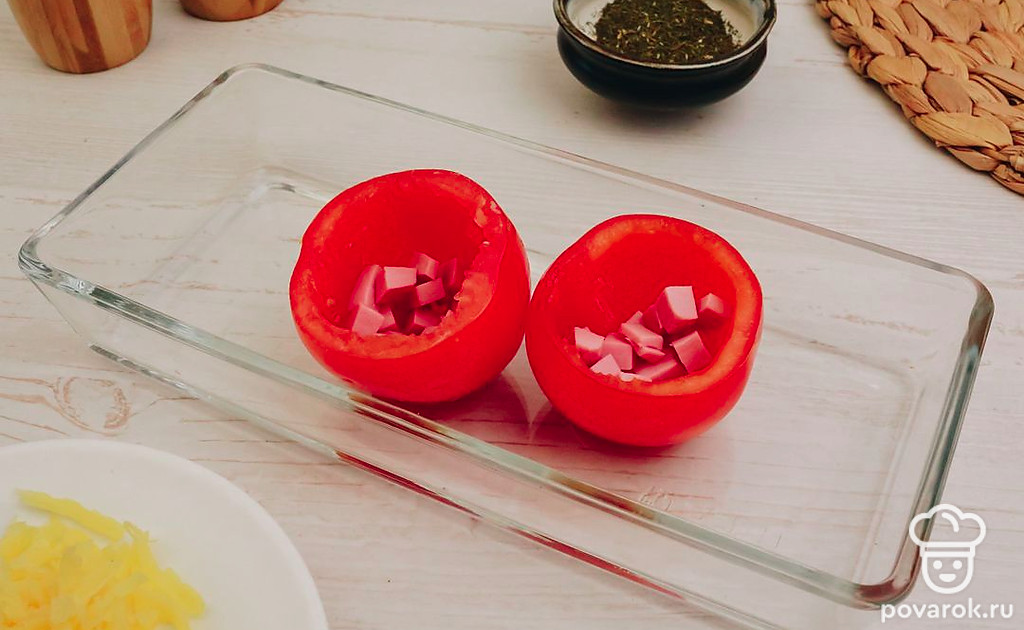 Помидоры, фаршированные колбасой, яйцом и сыром — прекрасный вариант быстрого и нарядного завтрака. Также это блюдо подходит в качестве закуски для праздничного стола. По желанию вы можете добавить в начинку для помидоров свежую зелень, мелко нарезанный чеснок и любимые специи.