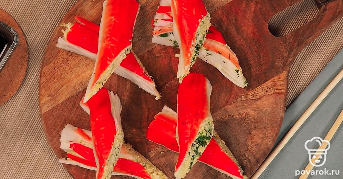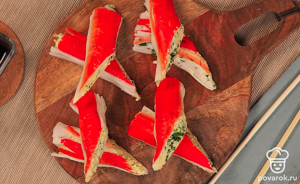 К крабовым палочкам с сыром и яйцом можно подать соевый соус.