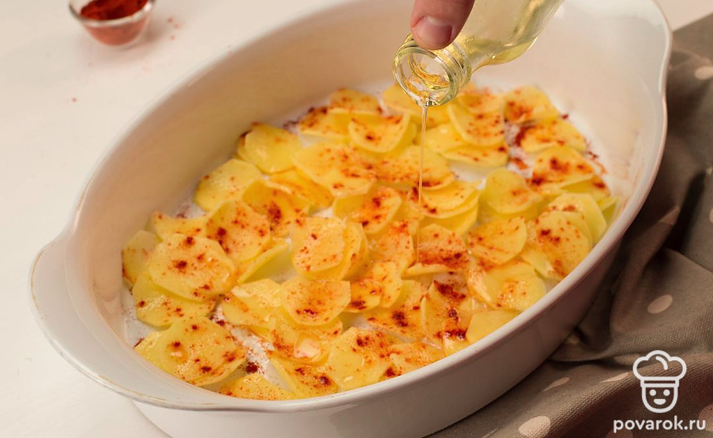 Отправьте картофель в духовку на 20 минут до образования на нем золотистой корочки.