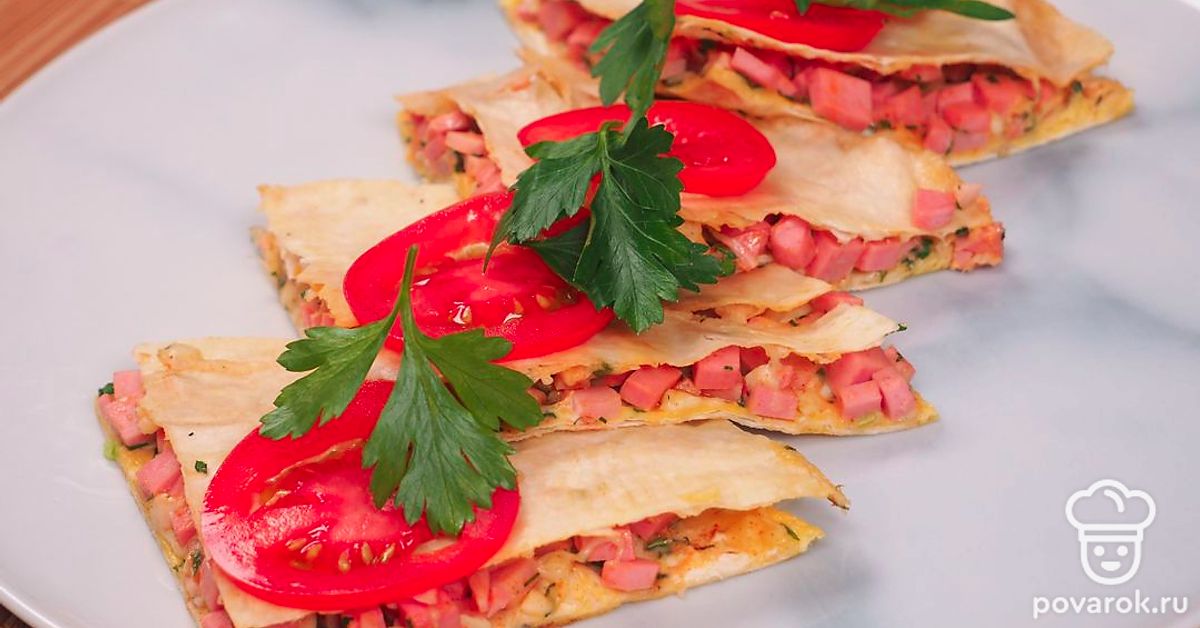 Традиционно сэндвичем называют закрытый бутерброд с начинкой между двумя ломтями тостового хлеба или булки. Вариаций начинки для сэндвичей множество — мясо, колбаса, сыр, овощи, зелень. А вот хлеб с легкостью может заменить тонкий армянский лаваш, столь полюбившийся в приготовлении быстрых закусок. Предлагаем научиться готовить горячий домашний фастфуд — сэндвич из лаваша на сковороде с сытной начинкой из колбасы, сыра и яиц.