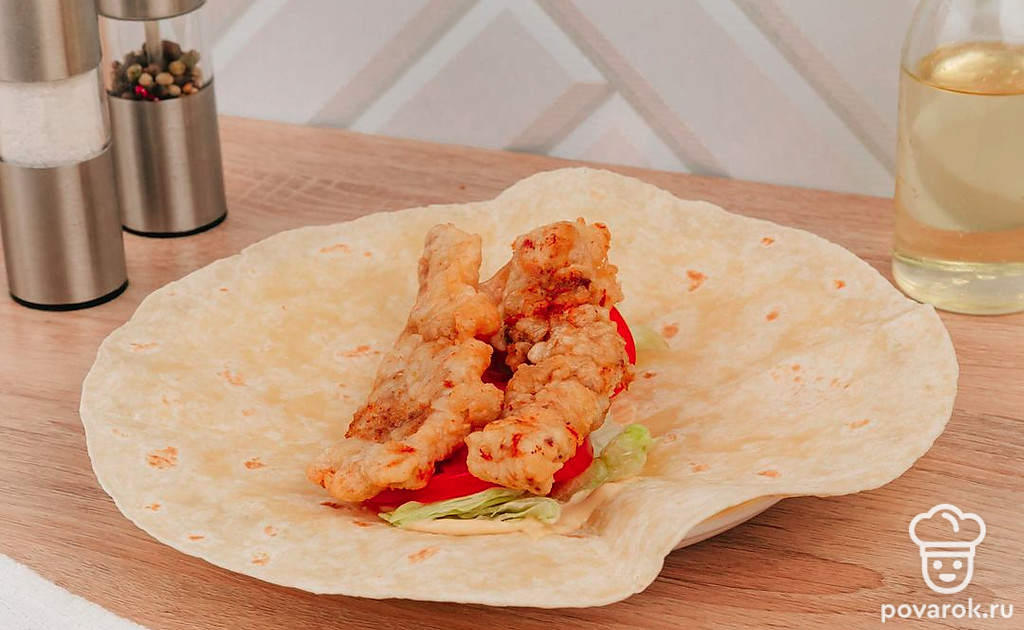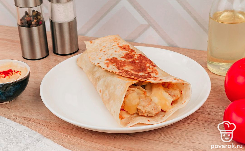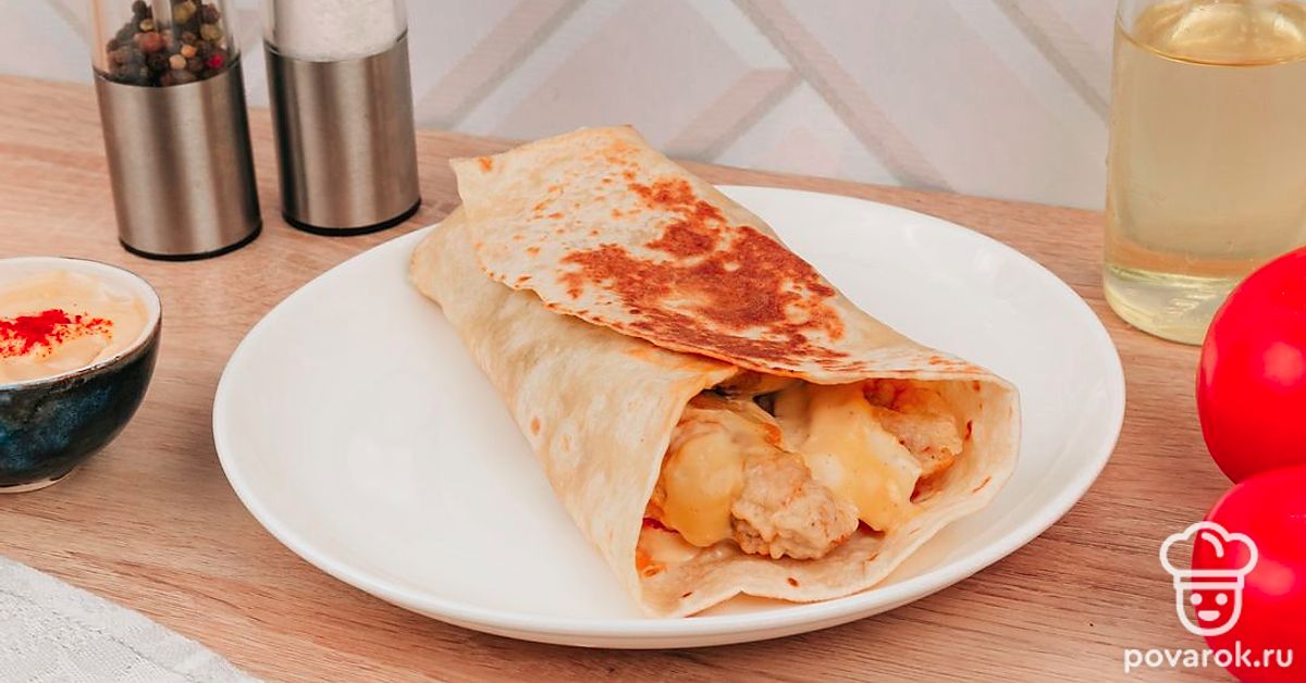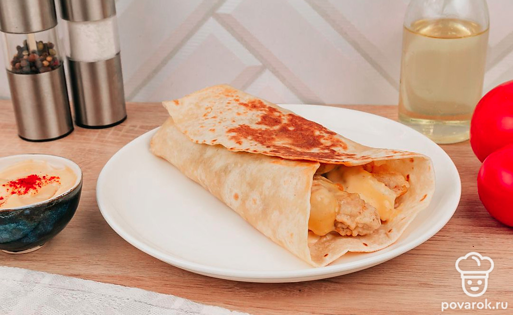 Интересная и простая альтернатива шаурме в домашних условиях. Особенно она приглянется любителям курочки из фастфуда. При сильном желании можете заменить мясо на другое, по вашему вкусу. Если под рукой нет тортильи — можете смело заменить лавашом.