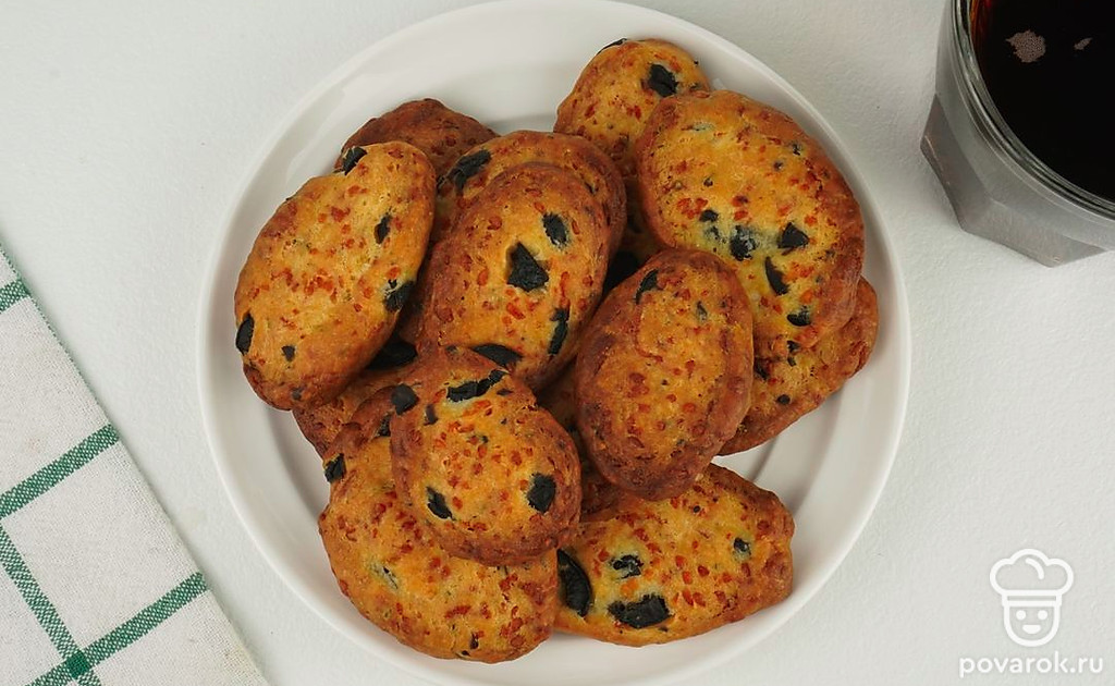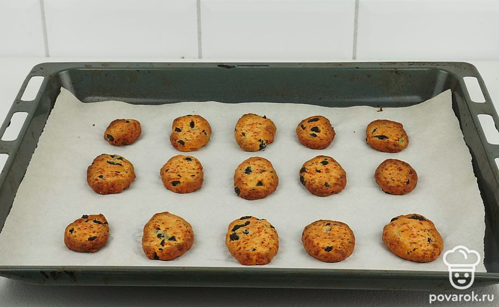 Печенье с пармезаном и маслинами — отличная, необычная и очень вкусная закуска для вечера с друзьями за бутылочкой охлажденного пива. Ароматное, хрустящее песочное печенье готовится просто и быстро из минимума ингредиентов. Пармезан можно заменить на любой другой твердый сыр, а в тесто дополнительно добавить любимые специи и травы. Подавайте печенье с различными соусами по вашему вкусу.