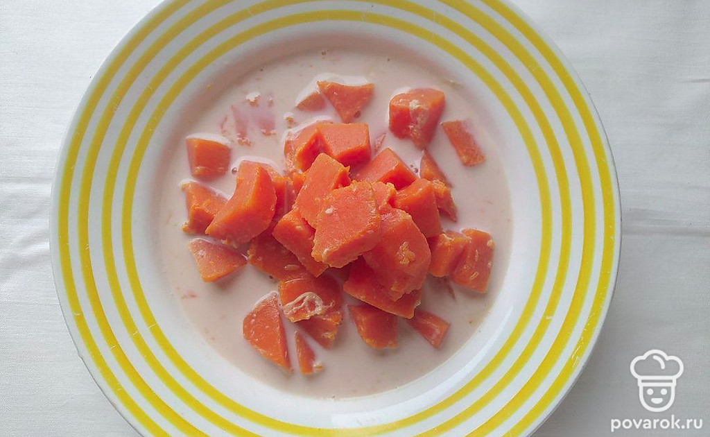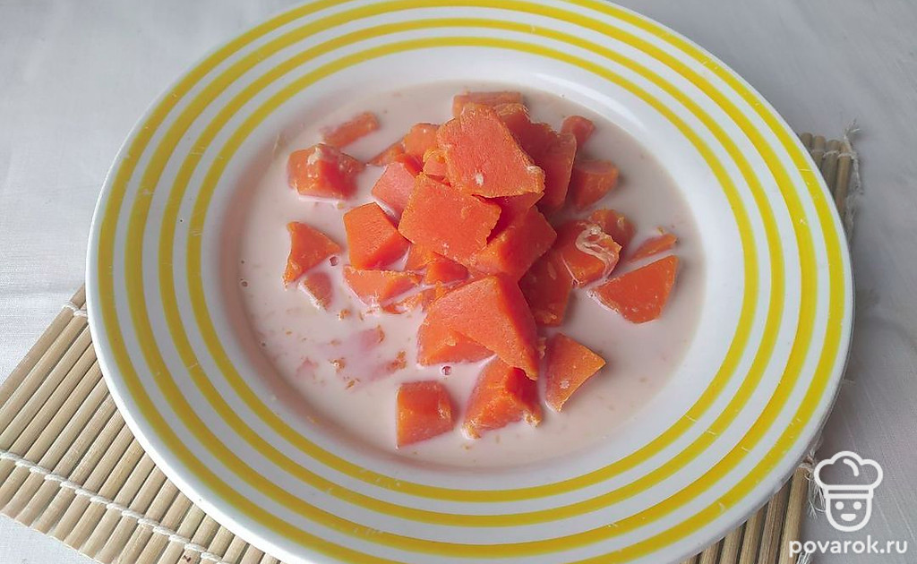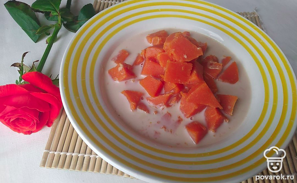 Тыкву все чаще начинают использовать в десертах: оладьях, кашах сладких и так далее. В этом рецепте тыква готовится в кокосовом молоке с добавлением сахара. Молоко придает кокосовое необычное послевкусие, а тыква хорошо с ней гармонирует. Оно готовится чаще в качестве десерта или сладкого завтрака.