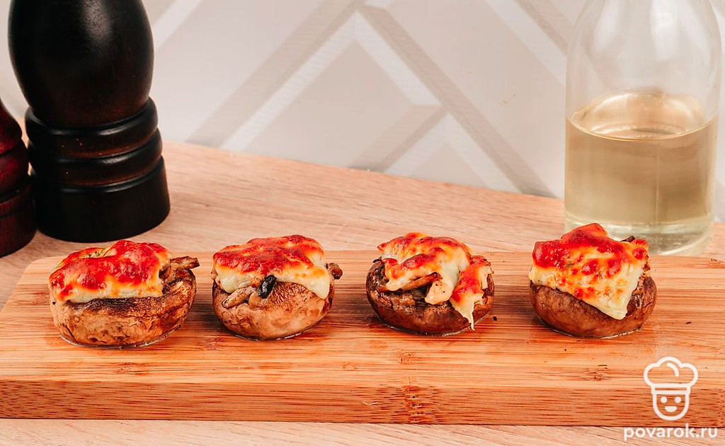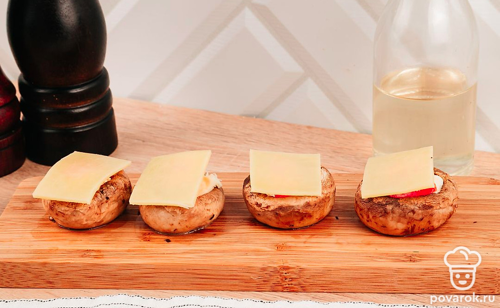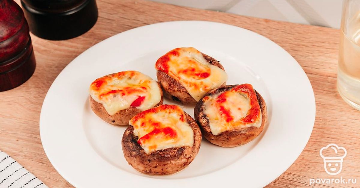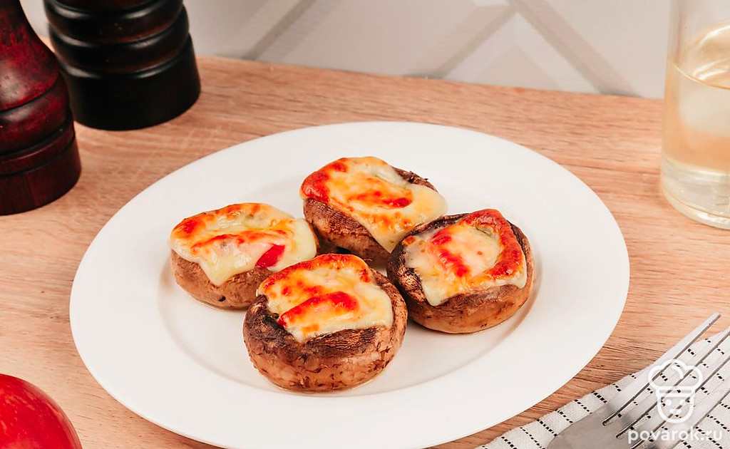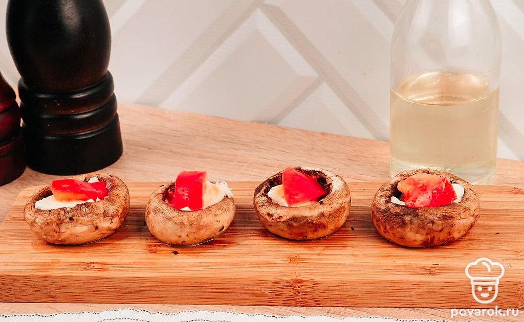 Шляпки шампиньонов, фаршированные сыром и помидорами, — сытная и вкусная закуска, которую можно быстро приготовить и подать к столу. Грибы хорошо сочетаются с другими блюдами, имеют неяркий вкус, который дает возможность раскрыться начинке. Если вы хотите снизить калорийность блюда, вместо плавленного возьмите тертый твердый сыр.
